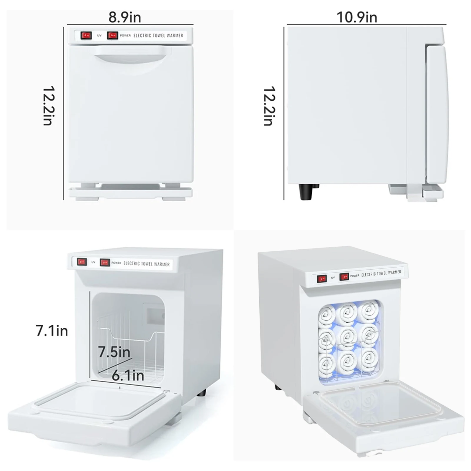 2.Generous Towel Capacity: Designed for versatility, this mini heated towel cabinet can accommodate 8 hand towels or 12 small towels at once, making it ideal for home settings or small businesses looking for efficiency.