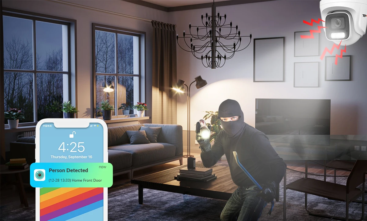 3) You can use "Double Light Alert" mode: when the light is insufficient, the infrared light activates and the camera image is black and white. When the camera detects someone at night, the camera will turn off the infrared light and turn on the white light, meaning the night vision will switch to a color picture. At the same time, the camera will send an alarm message to the mobile app.