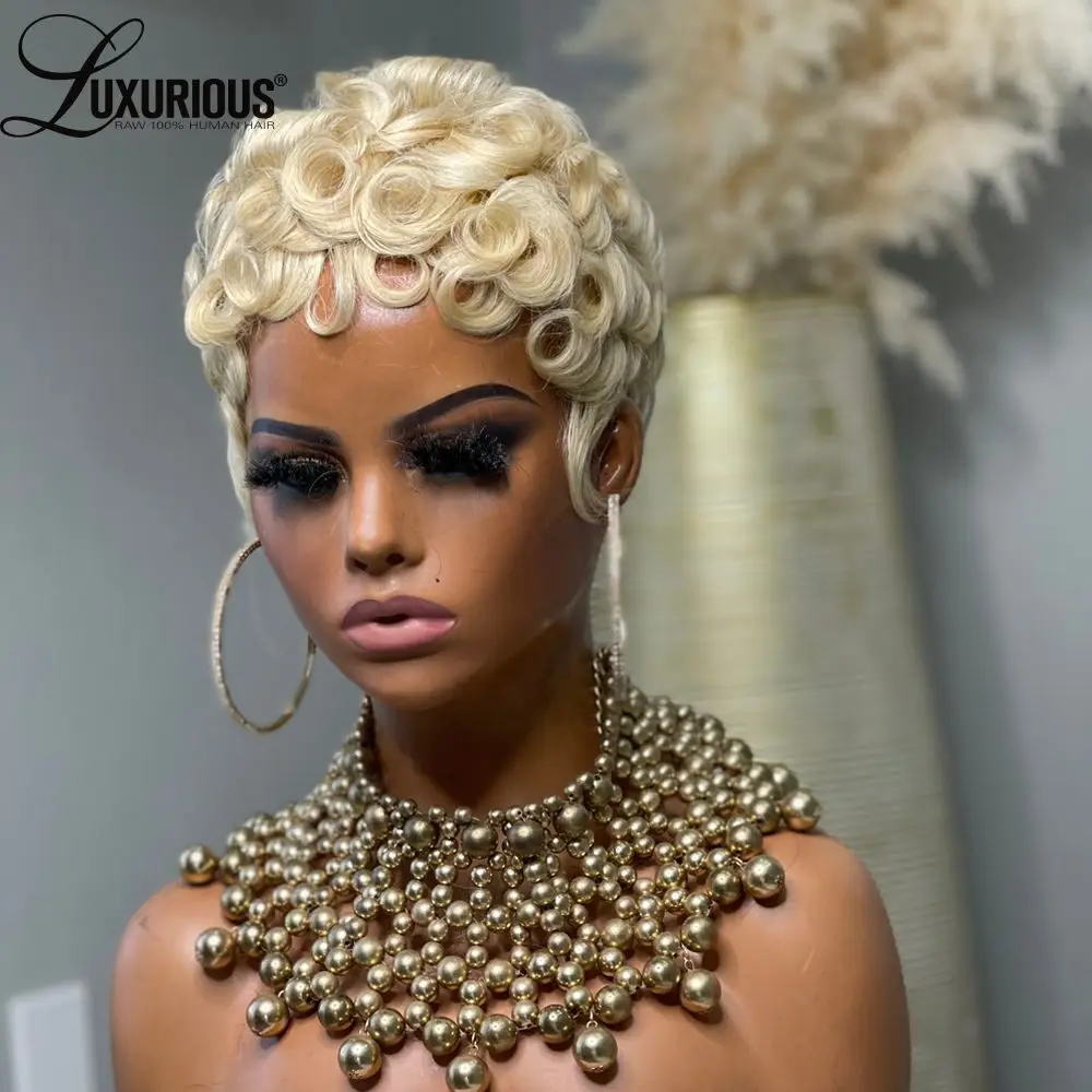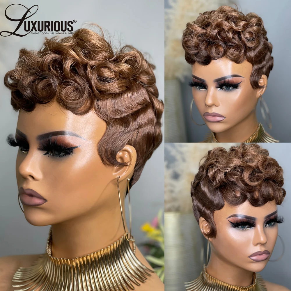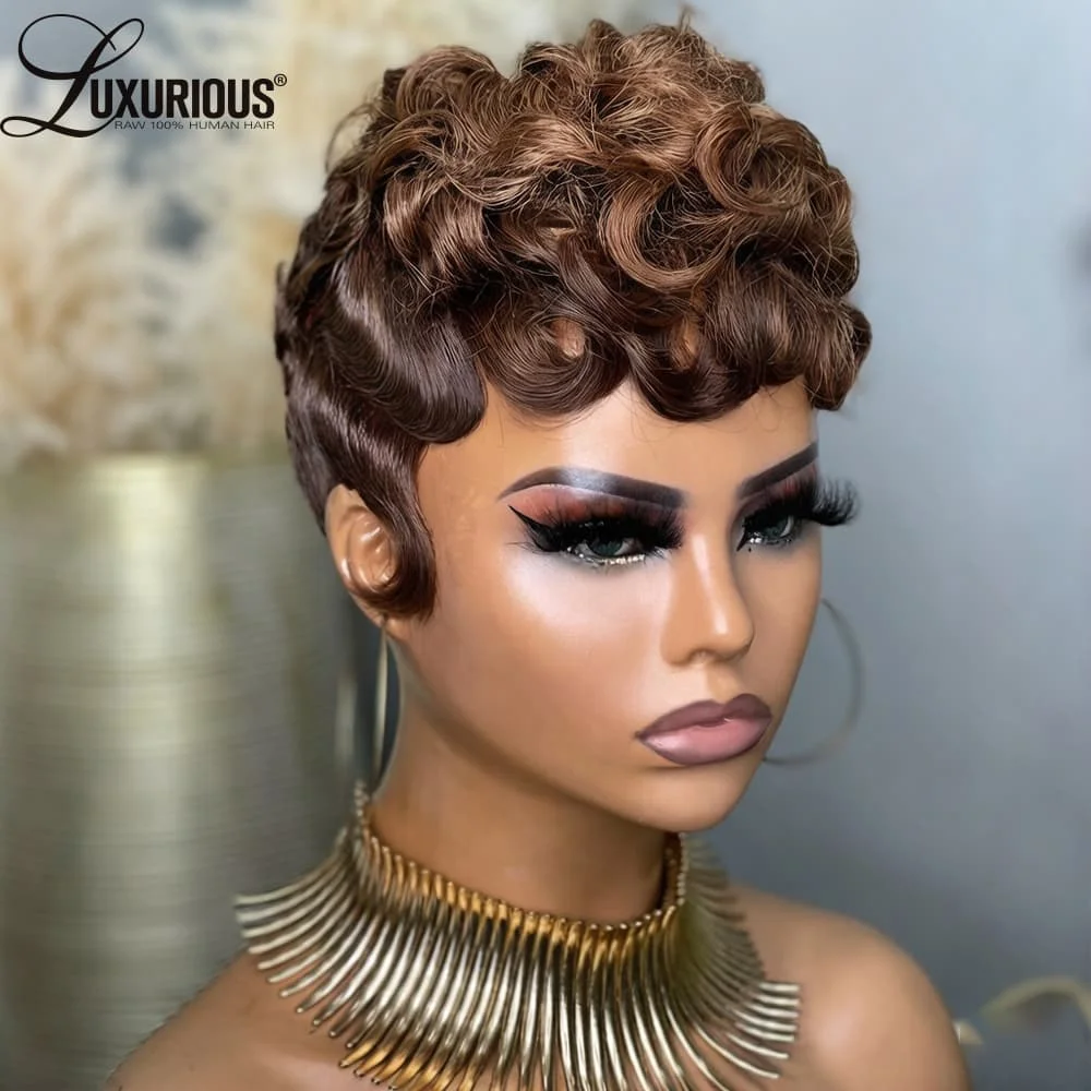 Straight Pixie Cut Human Hair Wig Short Bob Full Machine Made Wigs with Bangs Virgin Brazilian Wig for Women 180% Density