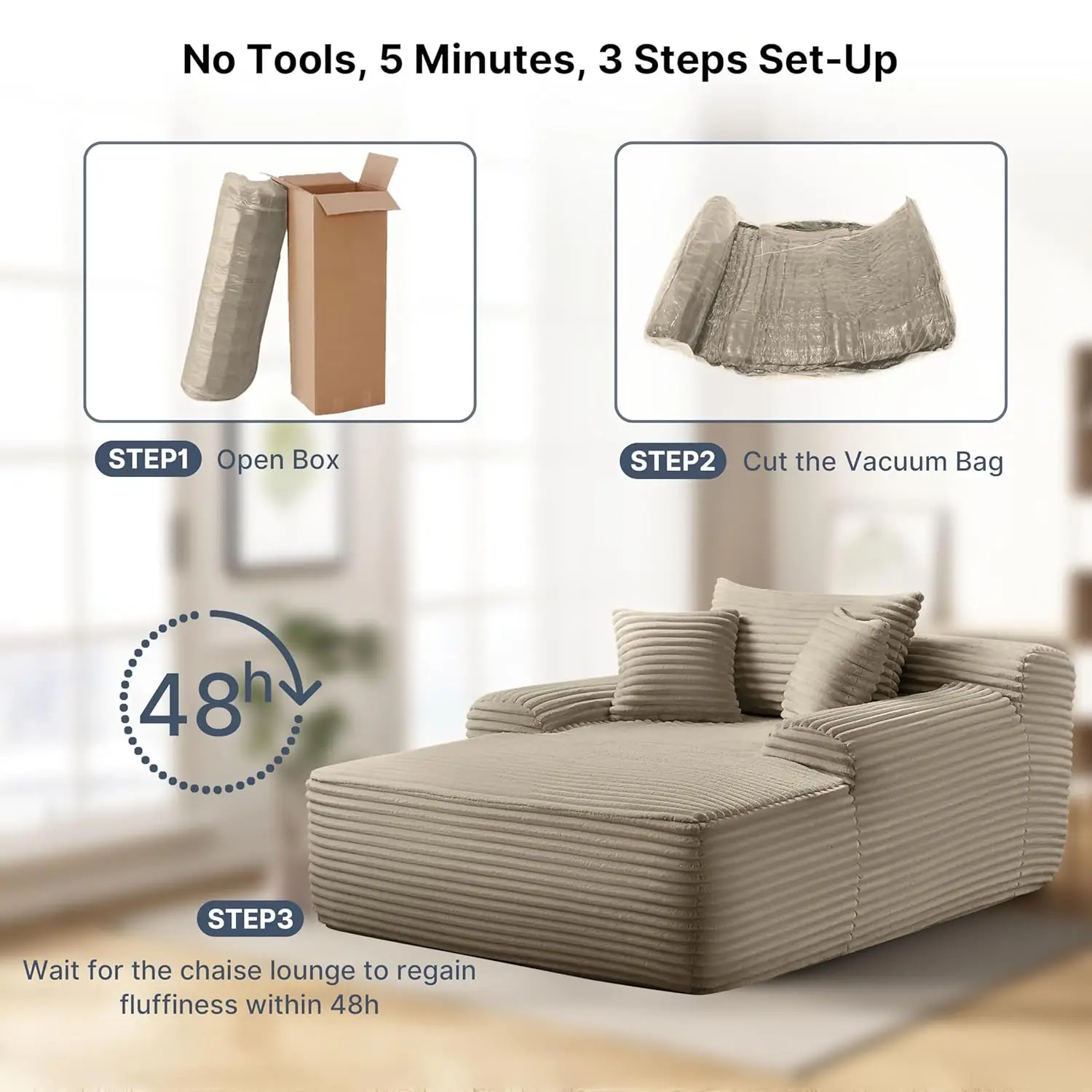 【Plush Corduroy Fabric】Oversized chaise lounge features skin-friendly, breathable corduroy fabric, offering a beautiful sheen along with an exceptional tactile experience, providing a more comfortable sitting and reclining experience.