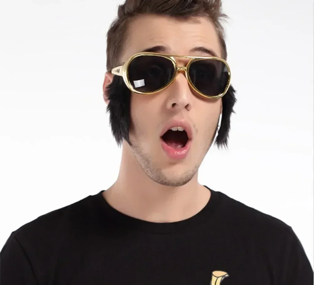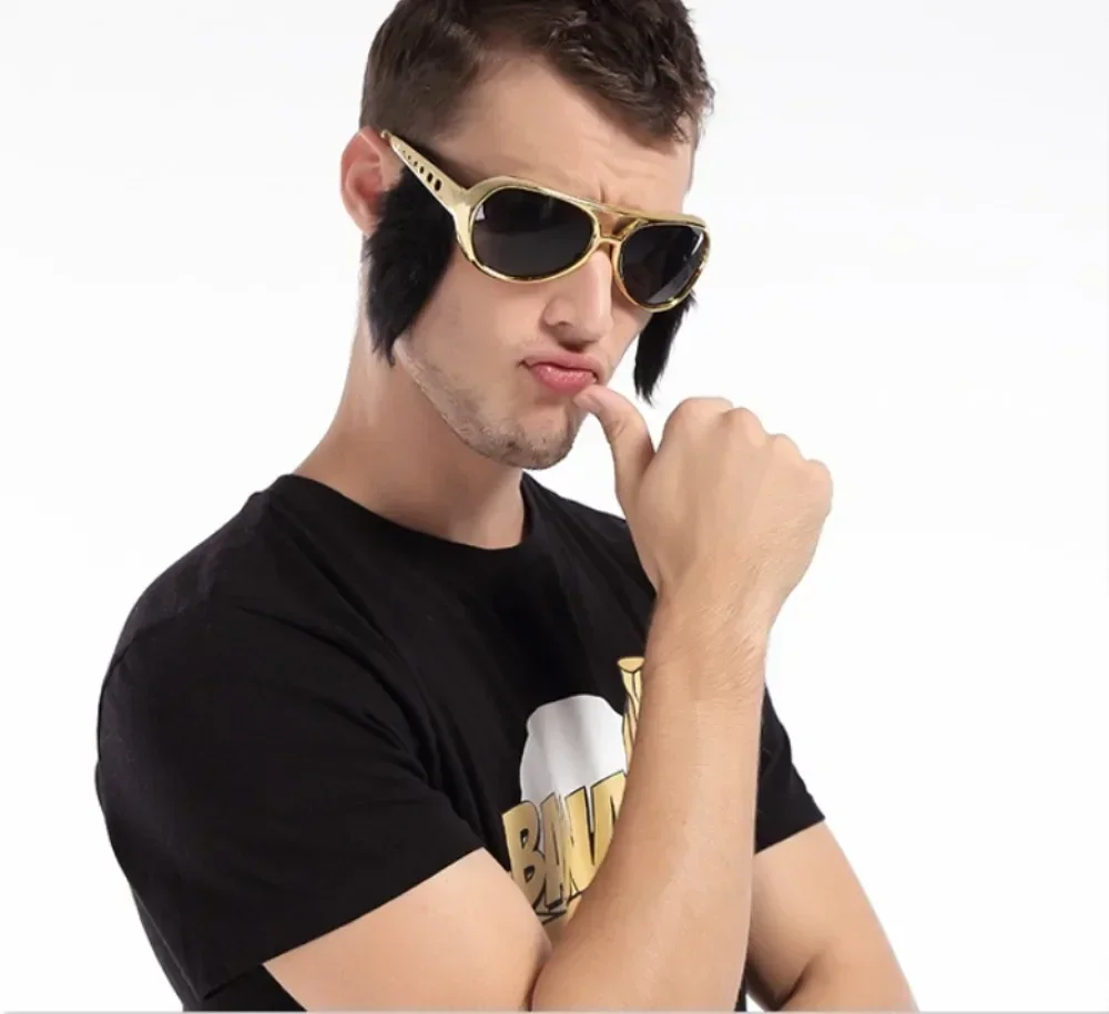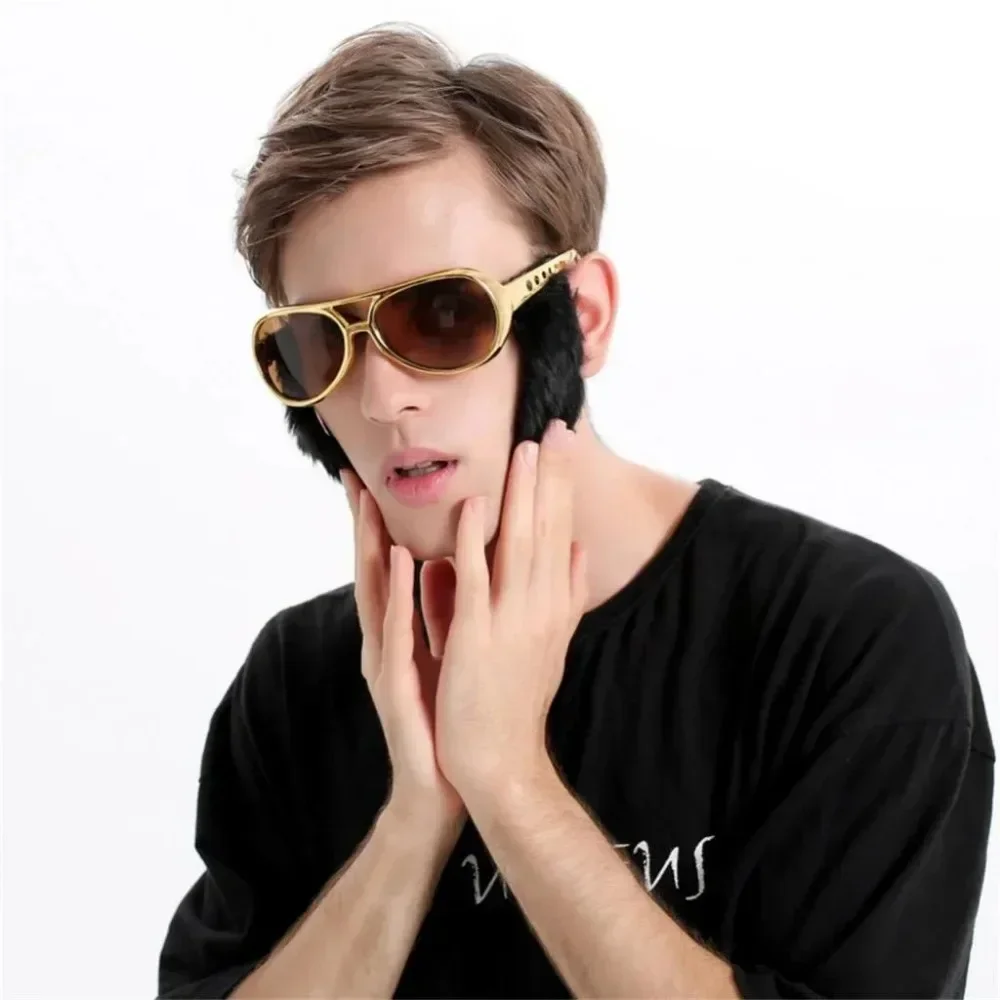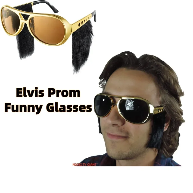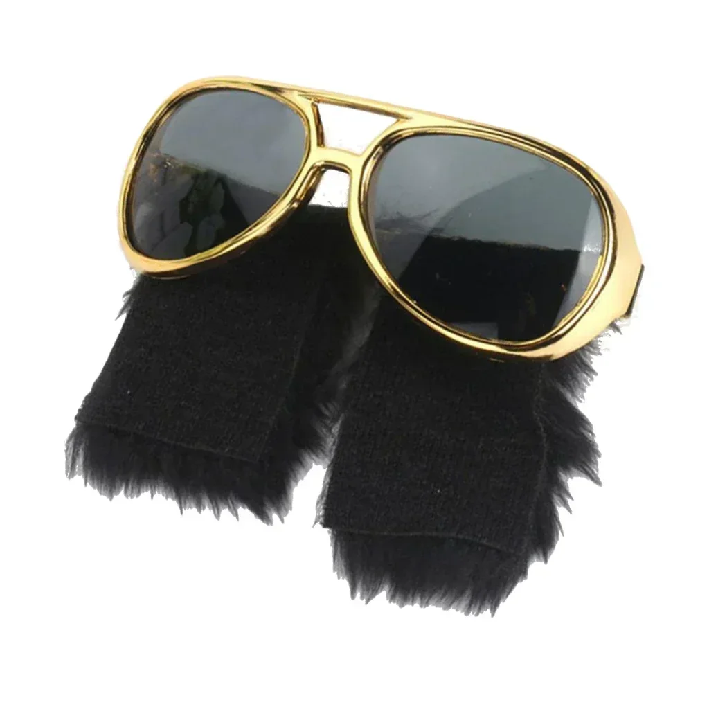 – A piece of novelty eye glasses, cool Presley sunglasses, with funny large black side whiskers