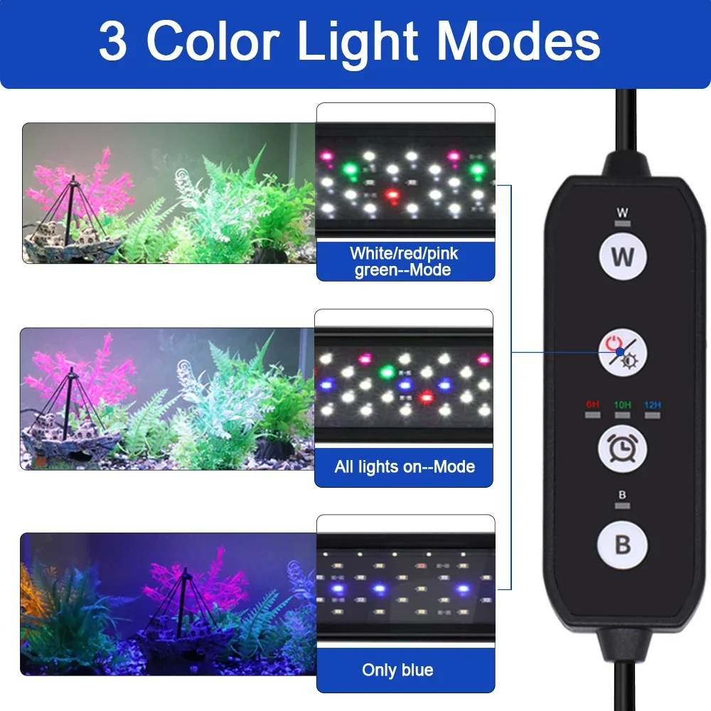 - Feature: Power failure memory function,Fish tank full spectrum lighting LED lights,DIY MODE,Aquarium Light for Plants,Adjustable Brightness,Timer setting
