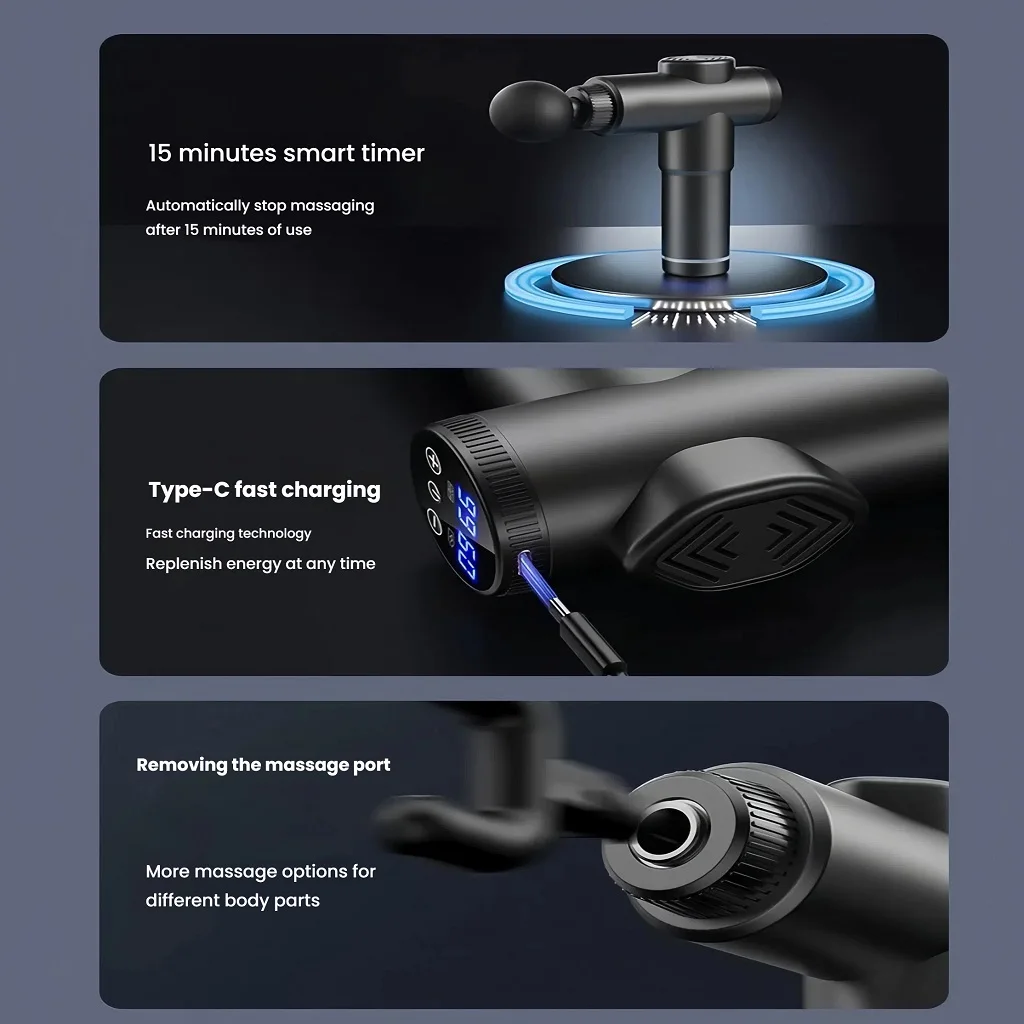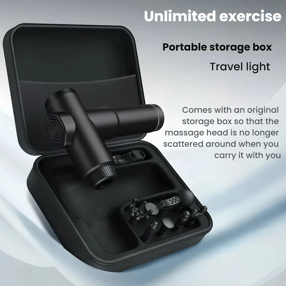 Stay mobile and relaxed with our battery-powered massage gun, perfect for on-the-go relief wherever you are.