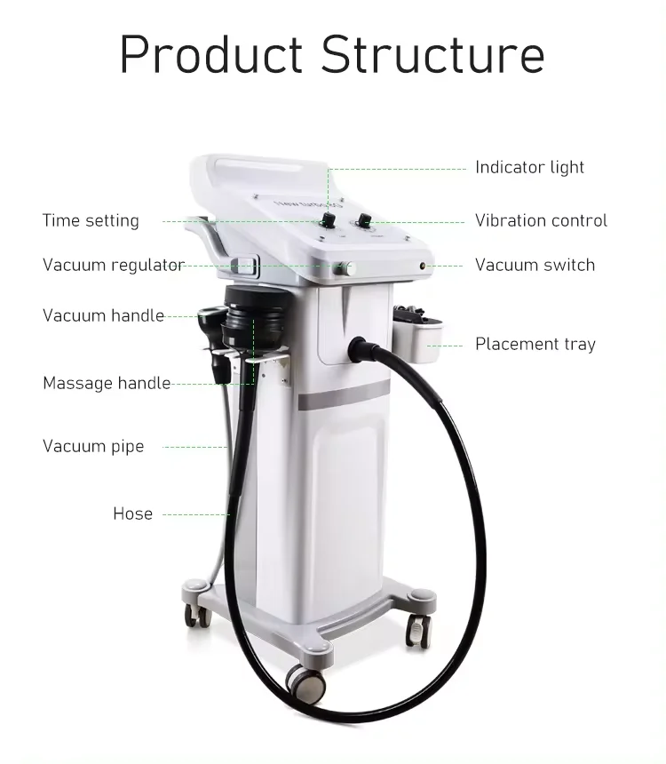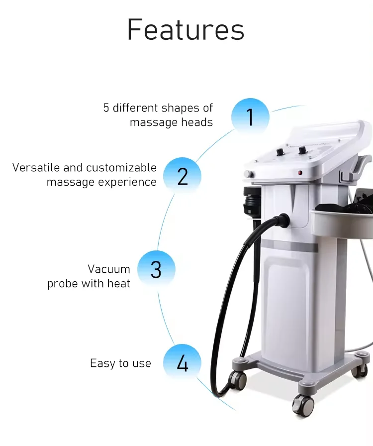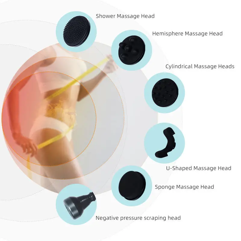Vacuum heating: The vacuum probe with heat is designed to stimulate blood flow and promote lymphatic drainage. Moreover, the added heat can also help to tone the body and excrete the body dampness.