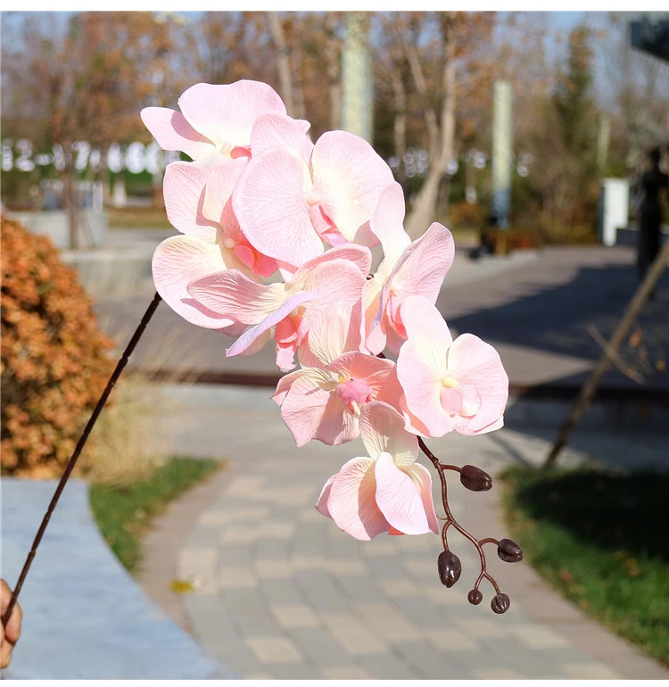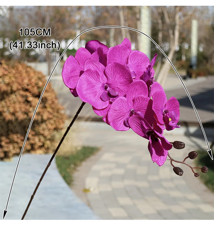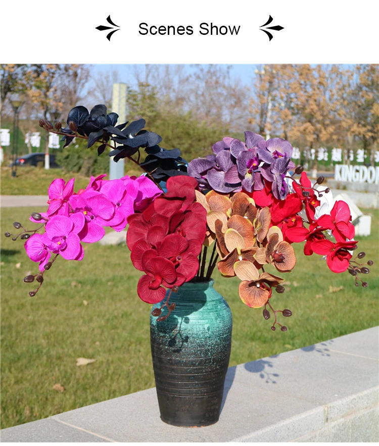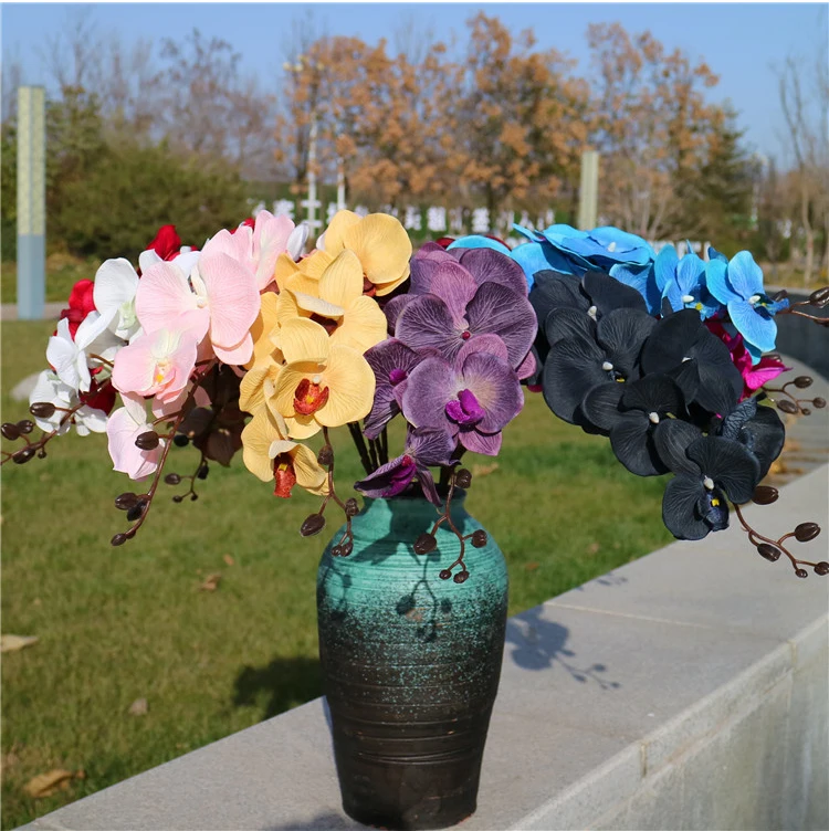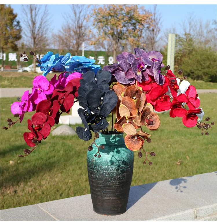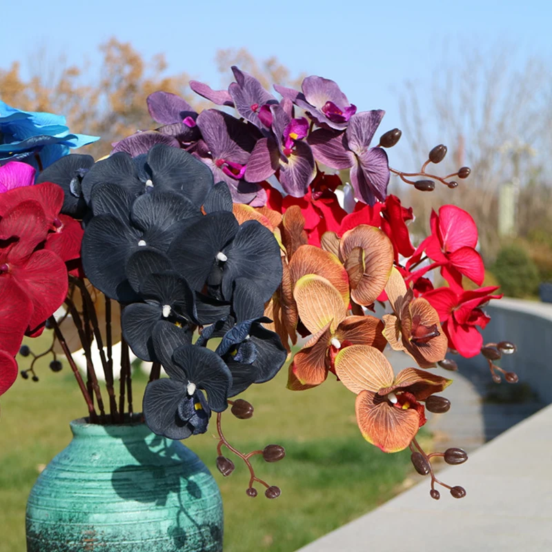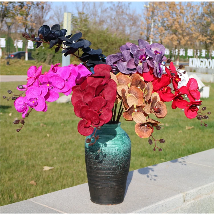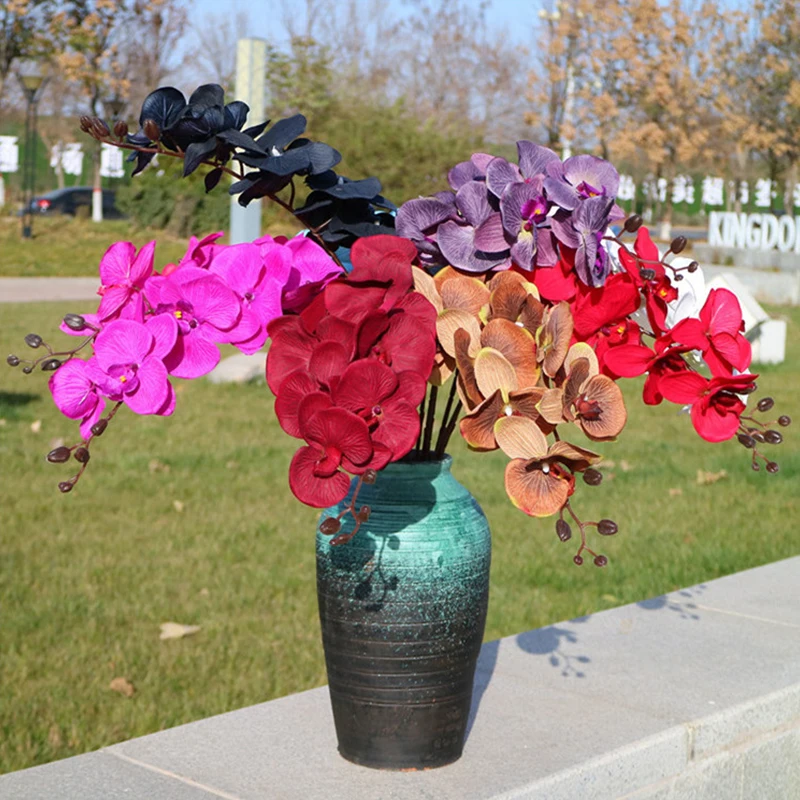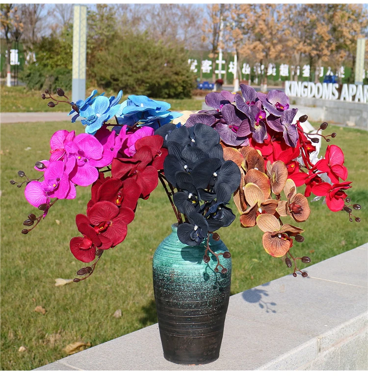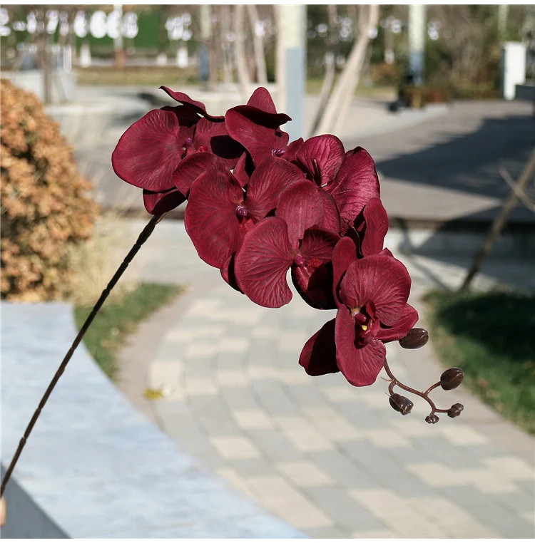 8 Heads Big Orchid Artificial Flower Branch Phalaenopsis Butterfly Burgundy Black Colorful Wedding Home Decor Potted Wholesalers