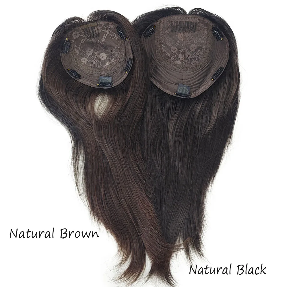 8X8" Natural Brown Jewish Topper Human Hair Virgin European 150% Density Silk Base Toupee with Clip in Kosher Sheitel Hair Piece