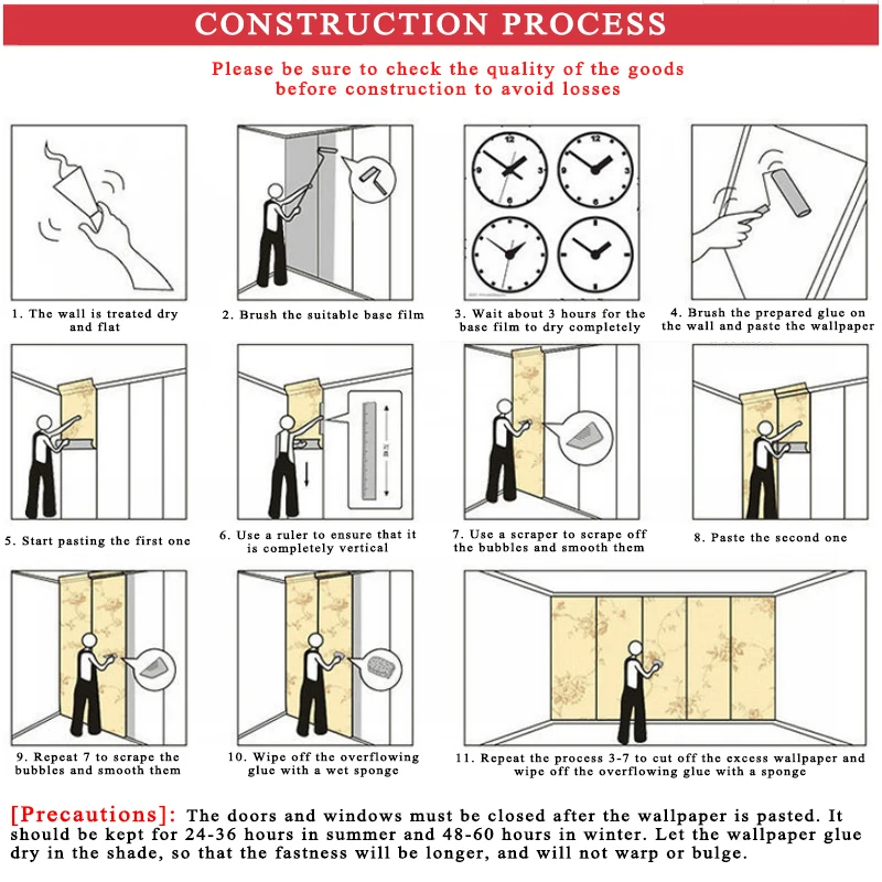1.The wallpaper is not self-adhesive, you need to buy glue to bond it yourself! In addition, after the wallpaper is produced, it is packaged in plastic. Some ink odors will not be emitted. For customers who are very sensitive to odors after opening the box, a slight odor may be generated. This is normal. After unpacking and pasting, the peculiar smell will gradually disappear after ventilation. Our products are in line with the national interior decoration material standards, please rest assured to use.