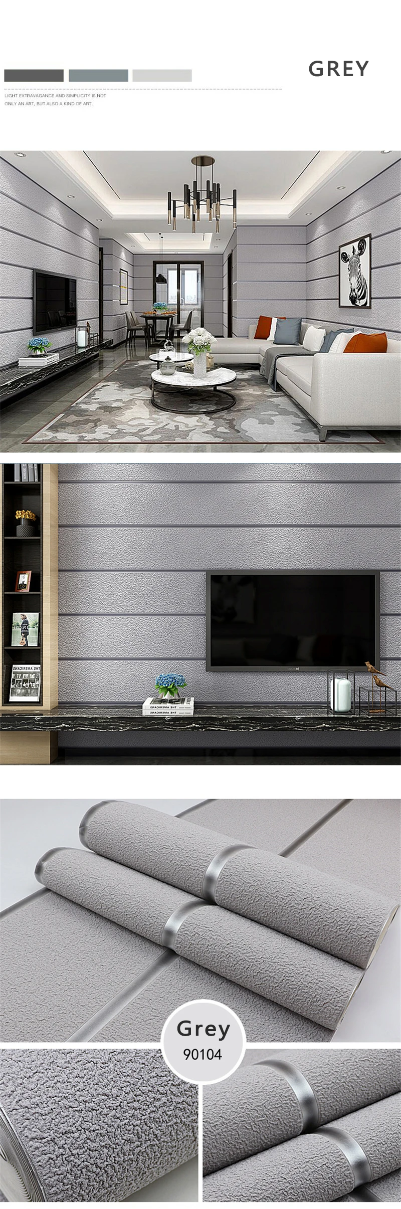 9.5m Roll Modern Deerskin Velvet Wallpaper Non-woven Fabric 3D Stripe Living Room Bedroom TV Background Wall Stickers
