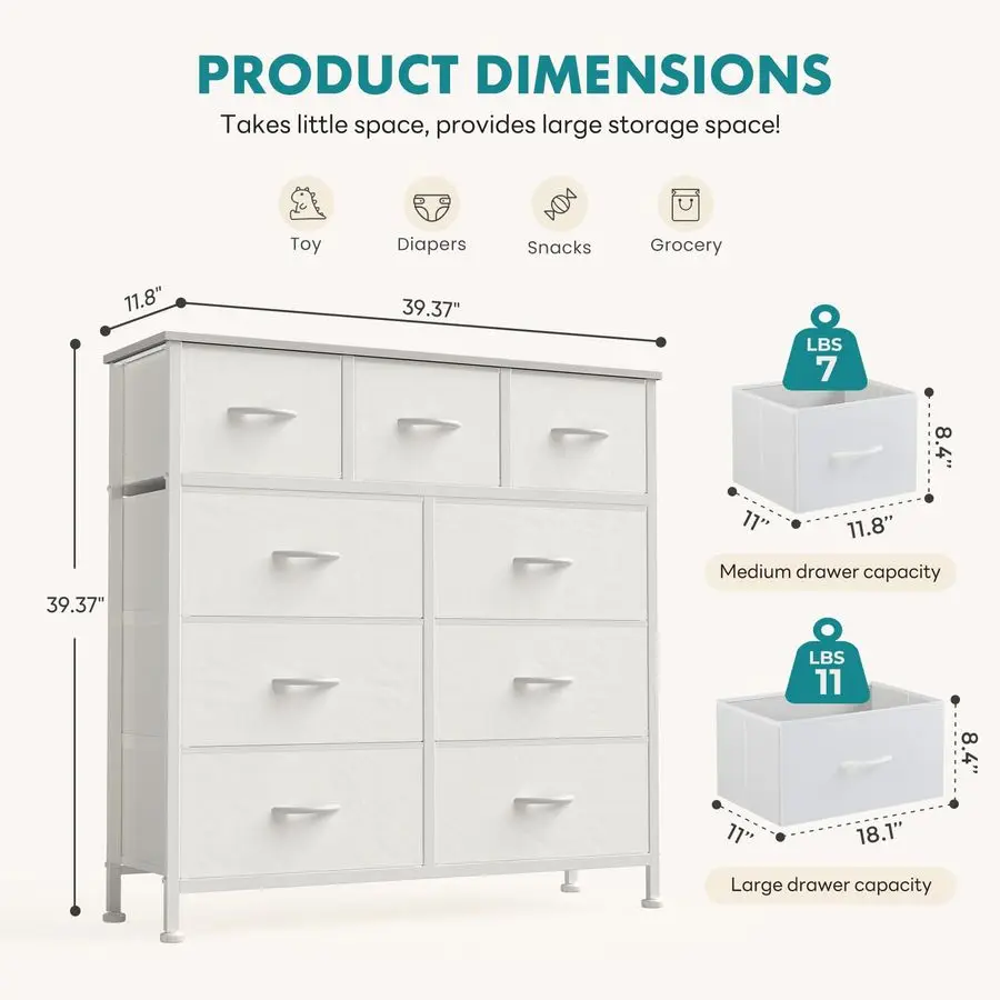 Ample Organized CapacityWith nine spacious drawers, this dresser provides tailored organization for diverse needs. The solid wood top offers a convenient surface for frequently used items, ensuring your space stays clutterfree and orderly.