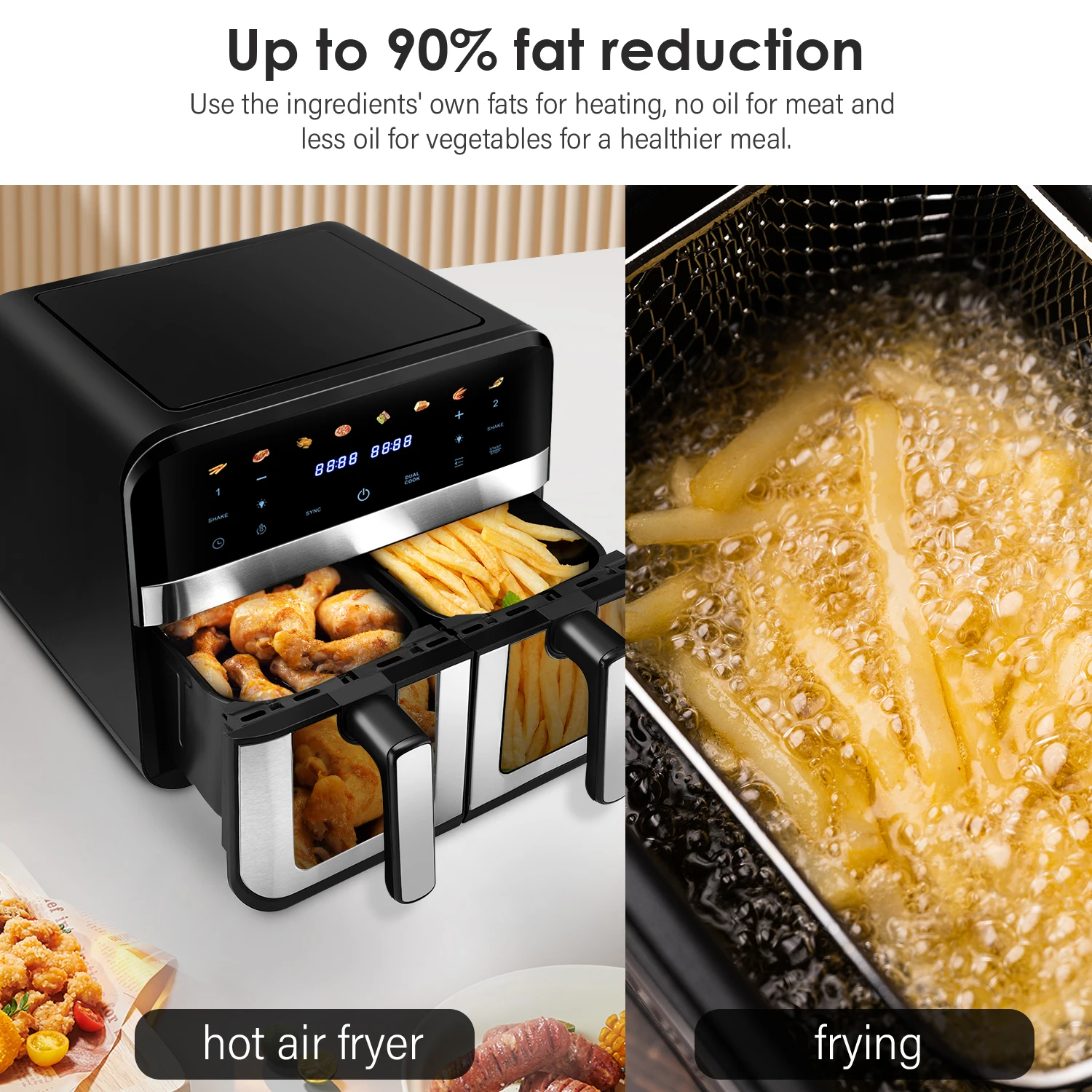 double basket 9L capacity, allowing you to have enough portions for you