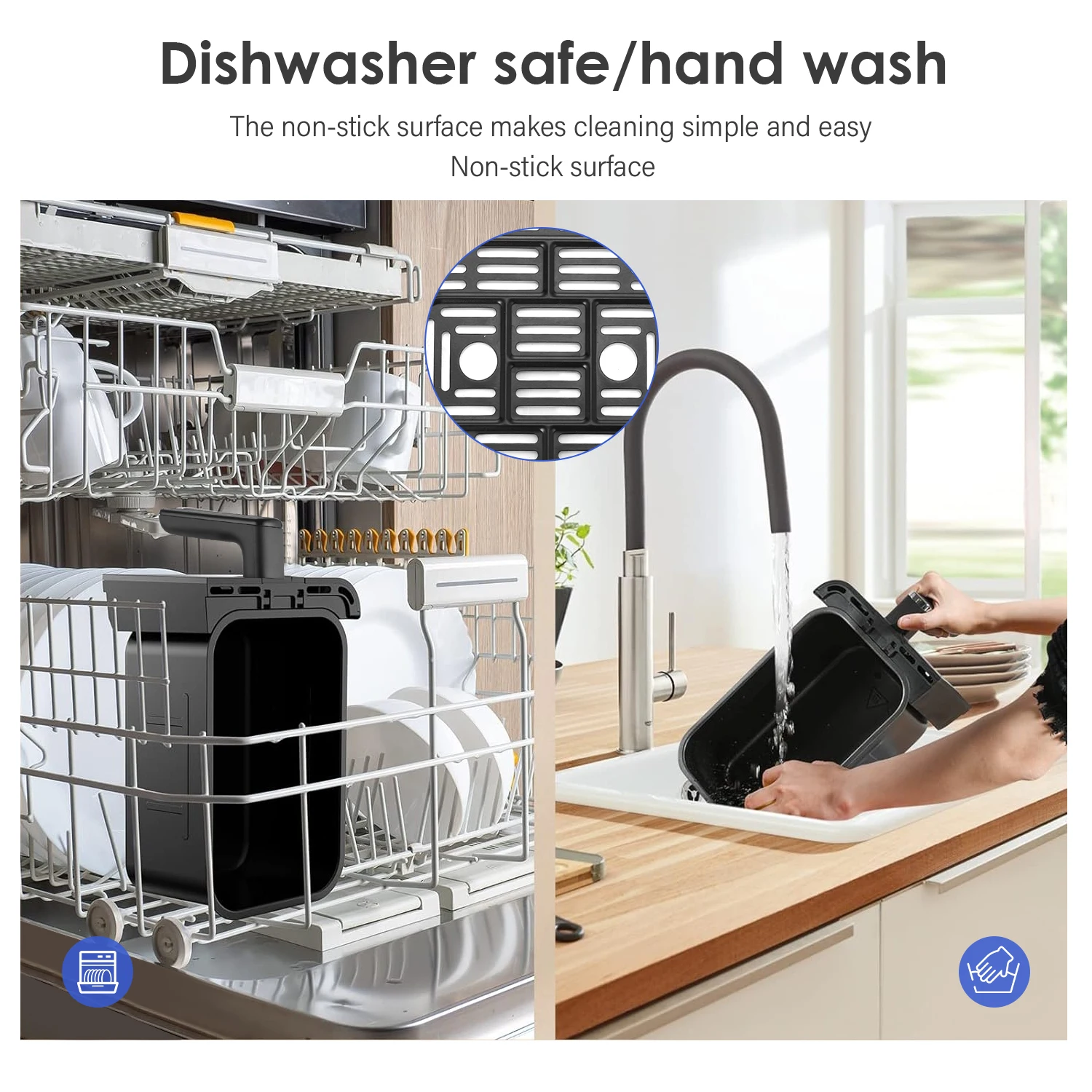 coating, you can cook faster and safer than in oil, eliminate splashes,