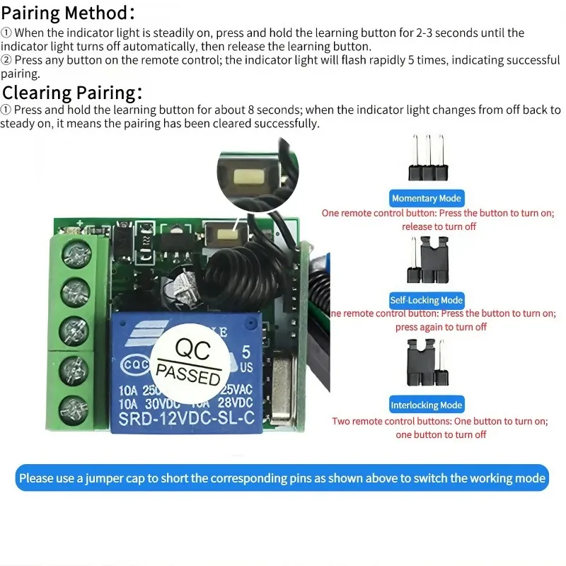Working Mode: Momentary, Toggle, Latching and Time Delay Mode.