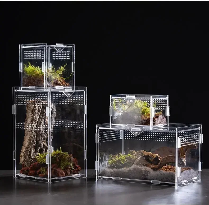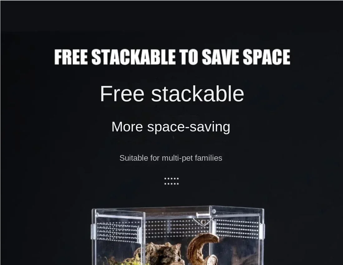 【FOR ANIMALS】Acrylic reptile terrarium has vents, enough vents to ensure that animals will not suffocate when staying inside, which can ventilate and dissipate heat and provide a good growth environment for animals.