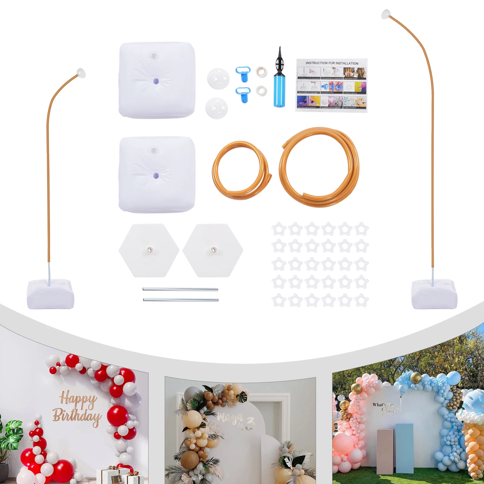 This product can be used for entrance decoration, backdrop, photo area, stage decoration, birthday parties, weddings, graduation ceremonies, business events, baby showers, Halloween parties, Thanksgiving Day, holiday celebrations, living room at home, gardens, hotel banquet halls or outdoor lawns and many other occasions. You can unlock a variety of creative ideas through balloons, flowers, ribbons, and other decorations.