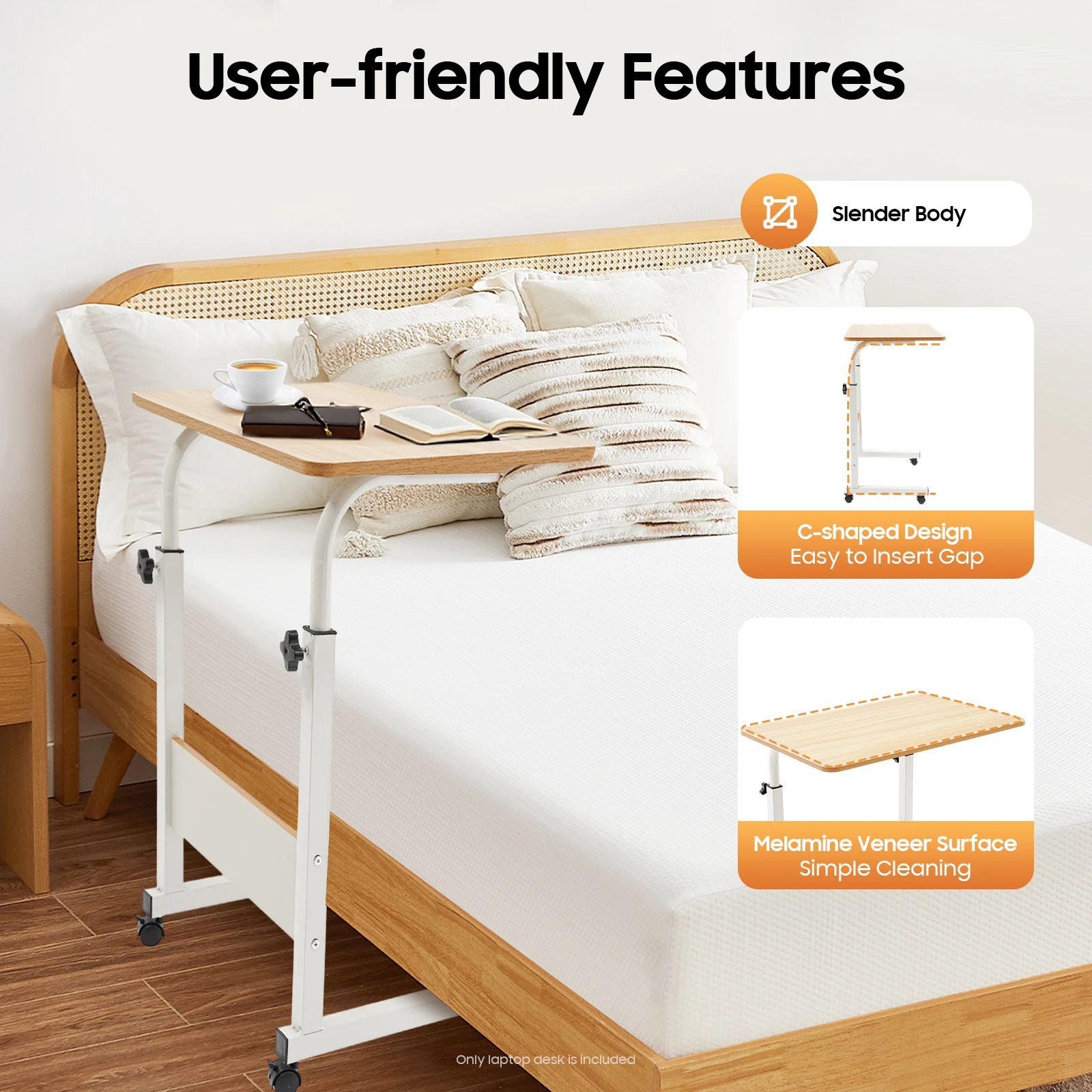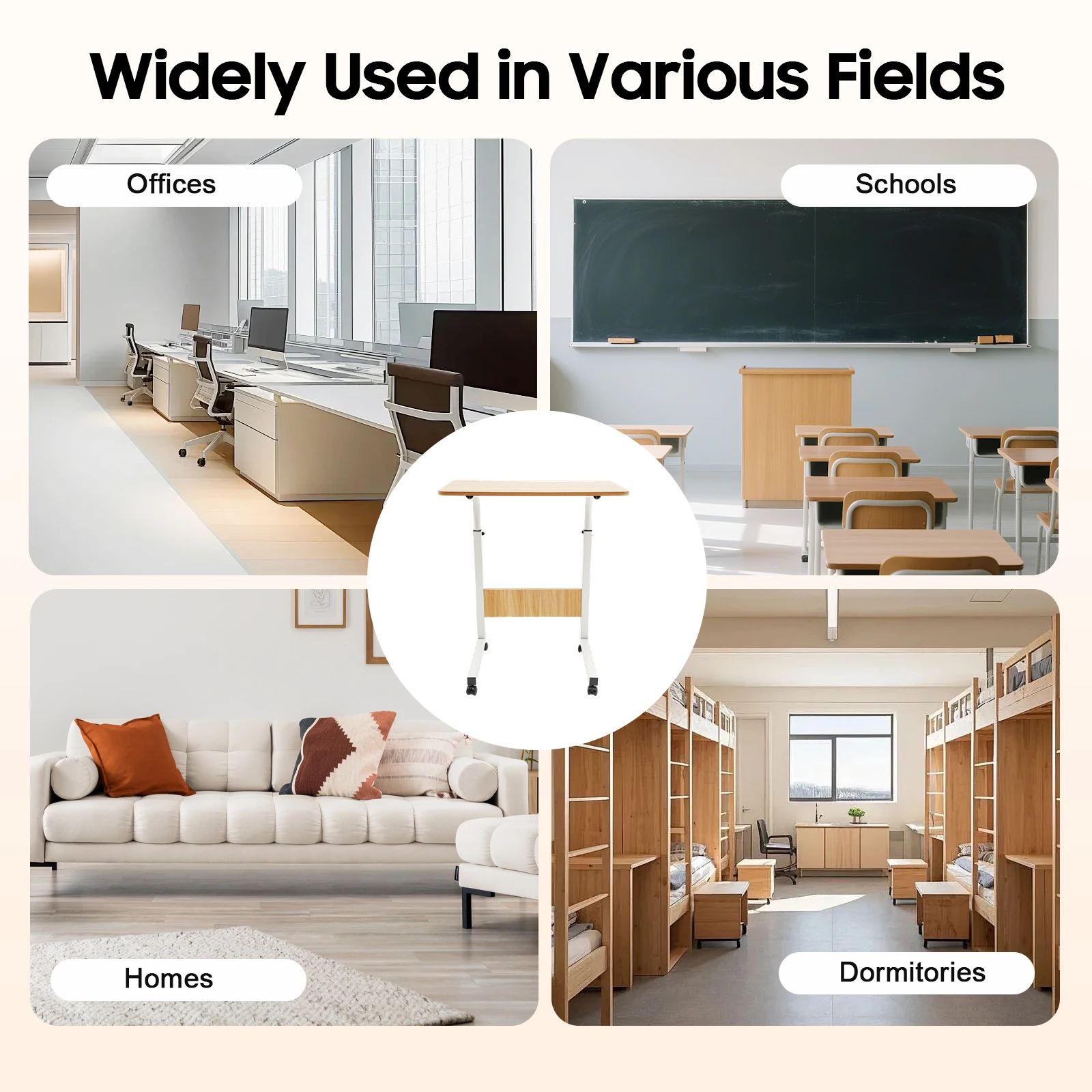 This product is suitable for use as a computer desk, writing desk, study desk, workbench, dining table, bed side table, etc., in bedrooms, living rooms, dormitories, etc. It is ideal for using over sofa, bed, on floor or elsewhere while using notebook, reading, writing, eating or drawing.