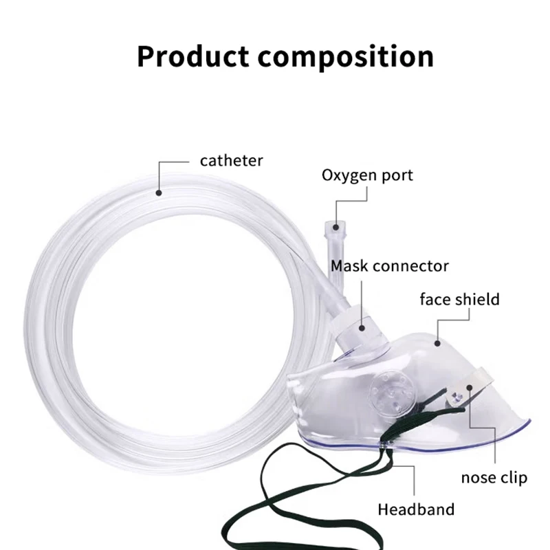1. Oxygen mask is made of high quality medical grade PVC material and composed of a mask and 1.5 meters of standard oxygen tube. This oxygen mask is latex-free, has no odor, is more durable and lightweight to maximize comfort.