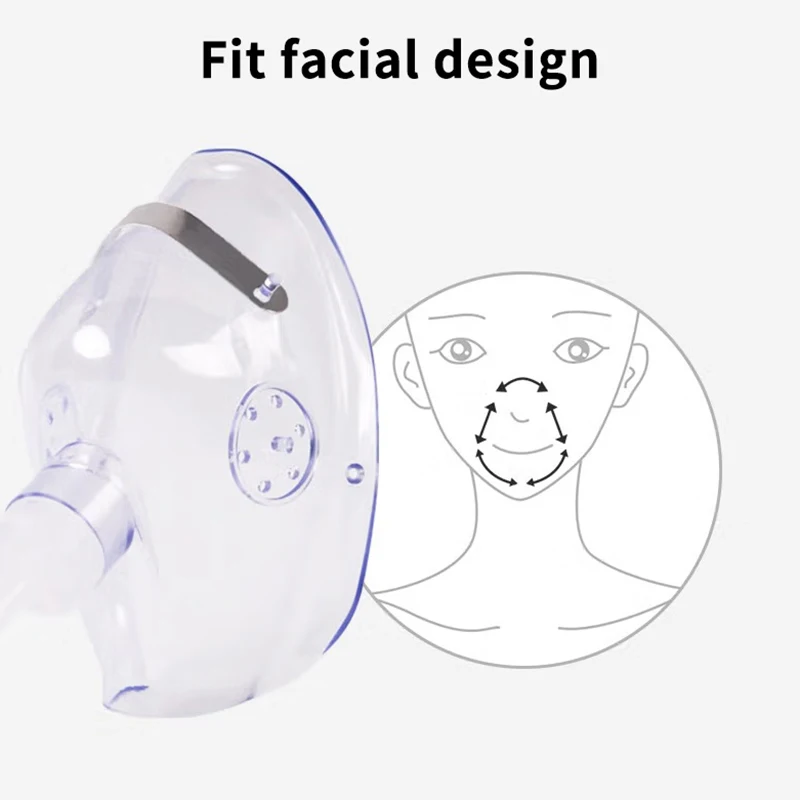 2. oxygen mask has an elastic rope and an adjustable metal strip to fit the nose and head, making it very comfortable and easily adaptable to any face size.