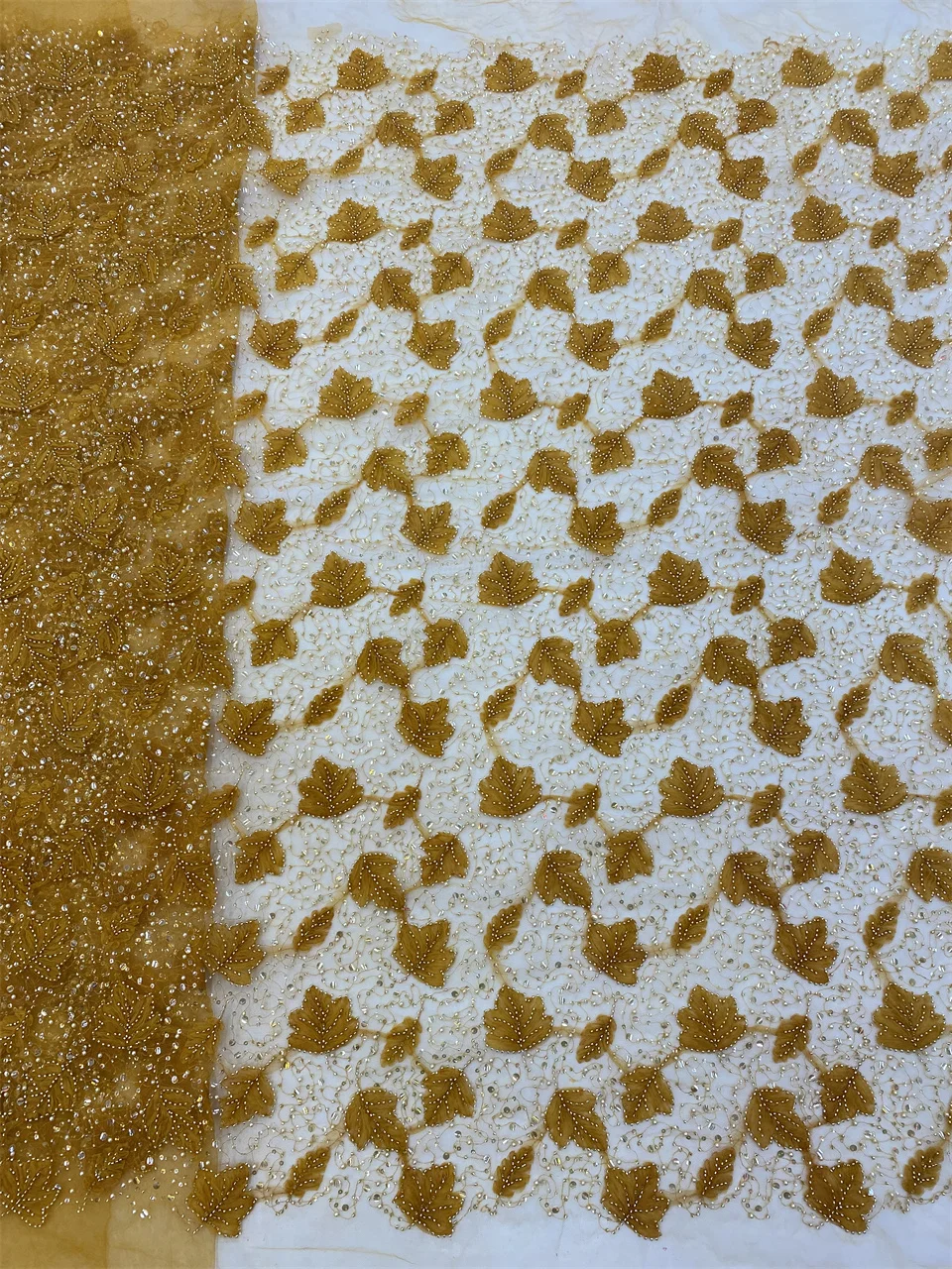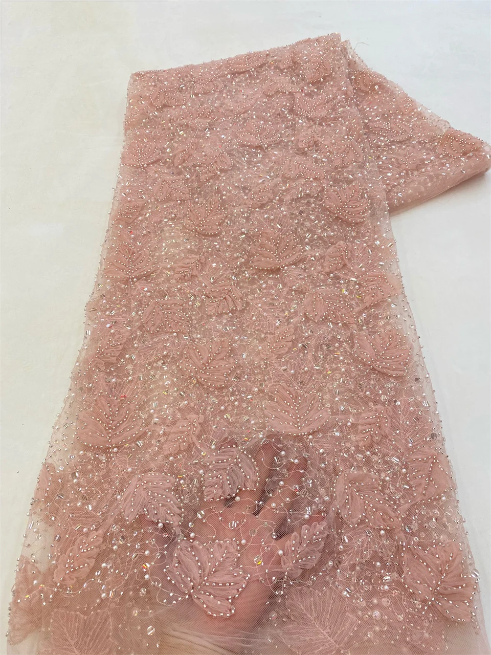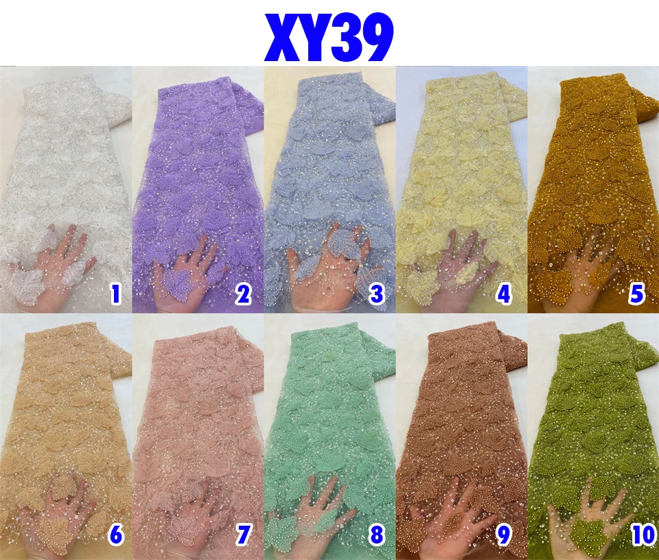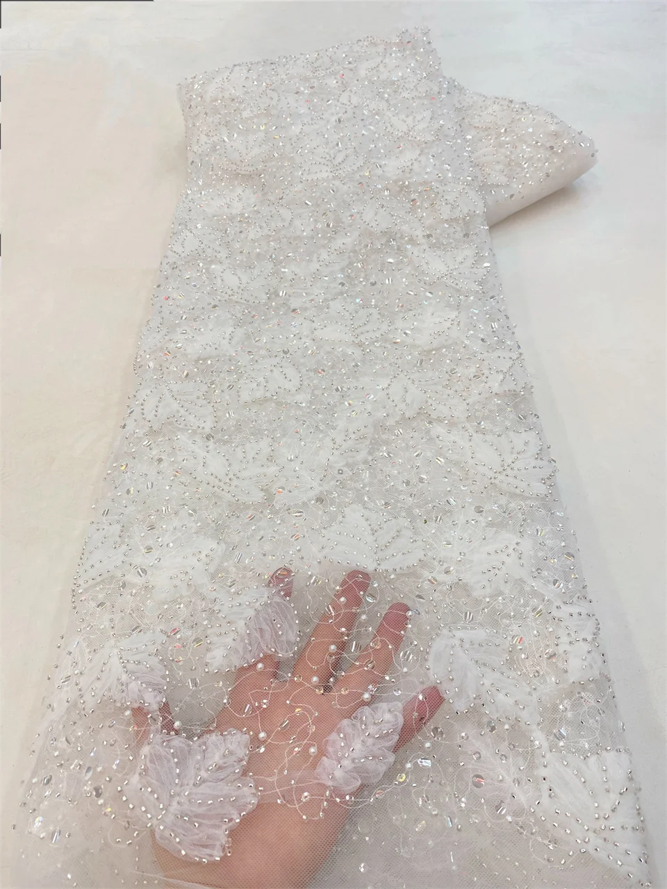 2023 Blue 3D Flower Lace Fabric With Pearls High Quality French Heavy Bead Tulle African Fabric For Wedding Party Dress Sewing