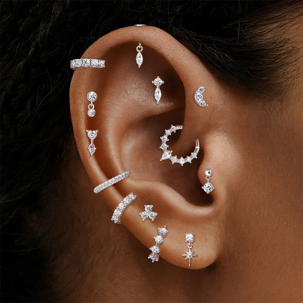 Aide S925 Sterling Silver Moissanite Piercing Stud Earring Silver Color Handmake Earrings for Layered Jewel Valentine’s Day Gift