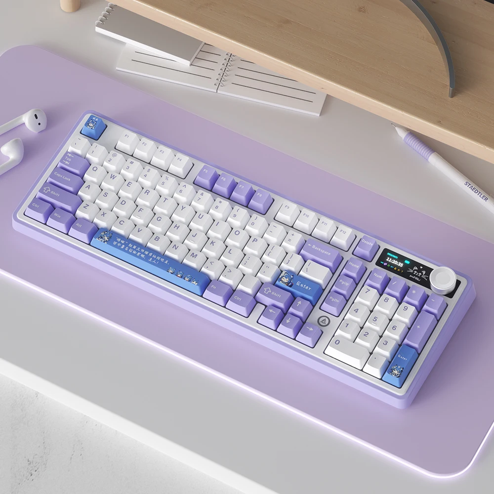 Awesome keyboard so glad i bought it. I think there is so my hype surrounding the aula f99/pro when this is slept on. I think it would be good if there were uk keyboard layout keys included as an option as it’s a bit irritating forgetting what key actually does what and some larger keys could have some better supports to prevent wobbling but overall it’s not too bad at all. The wobble is only slight and only really noticed if you’re picky and look at the small details. For general and gaming use it’s perfect, it produces the creamy sound when typing and you have a volume dial and lcd screen which is programmable. Some keys in the software can be mapped to functions like next song, pause etc which is handy and they can also run micro scripts iirc. Overall for the price it is a great keyboard and i would buy again no questions asked