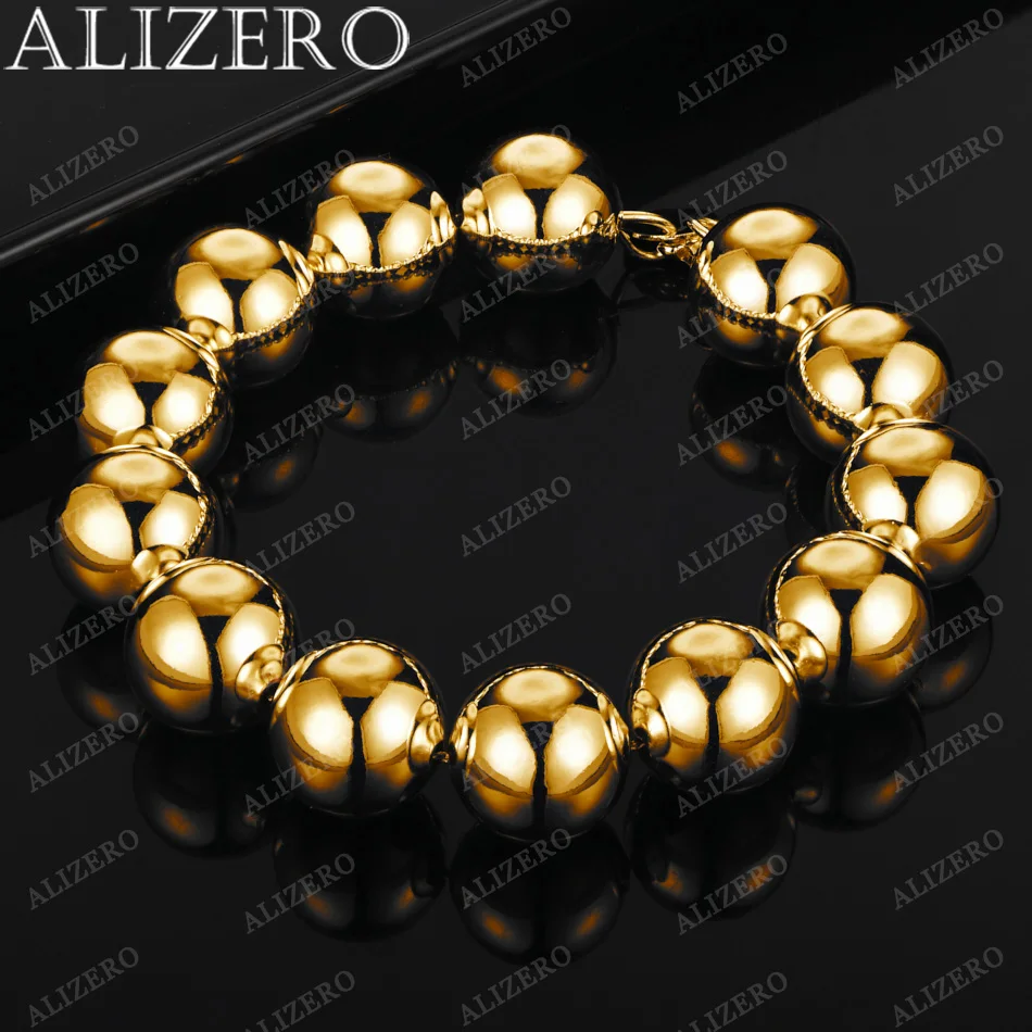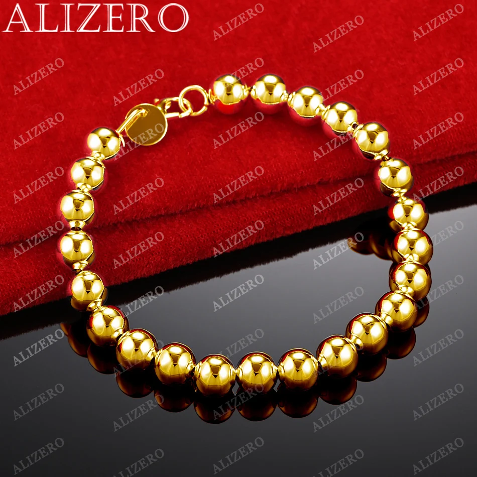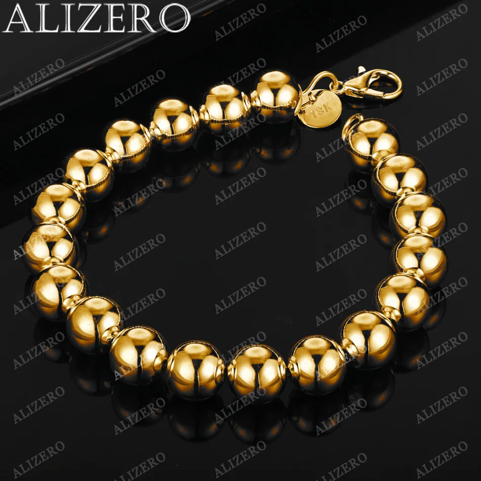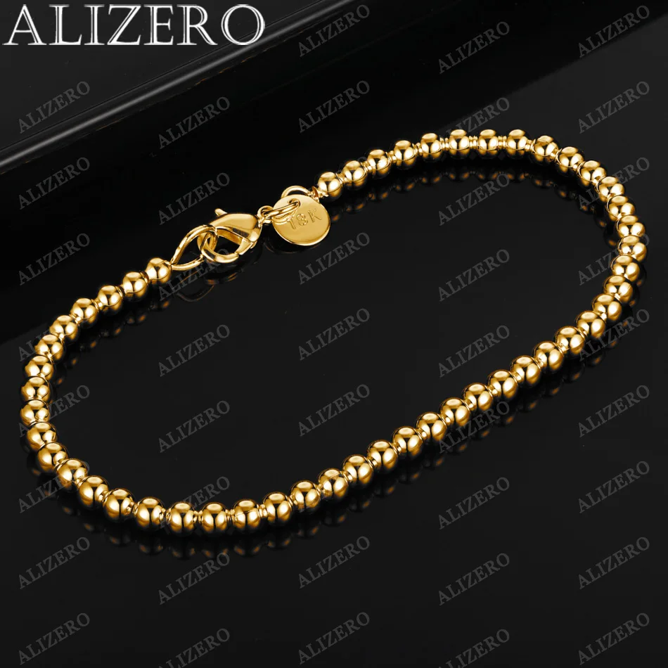 ALIZERO 18K Gold Bracelet 4/6/8/10/14MM Smooth Beads Ball Chain Bracelets For Woman Men Fashion Wedding Party Gift Fine Jewelry