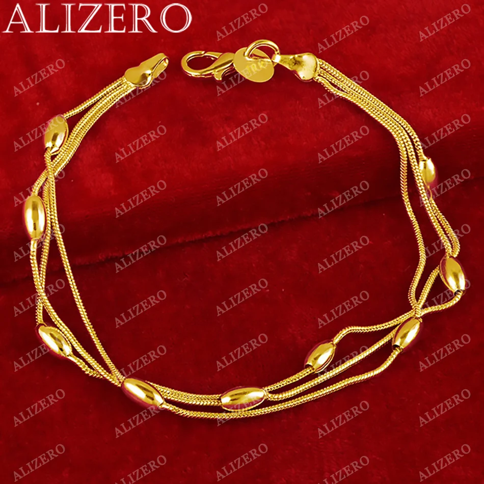 ALIZERO 18K Gold Snake Bone Chain Beads Bracelets For Women Fine Jewelry Wedding Banquet Party Gift Fashion Personality Bracelet
