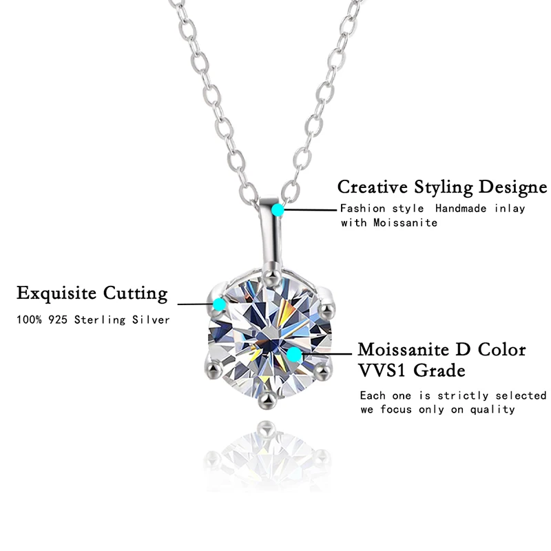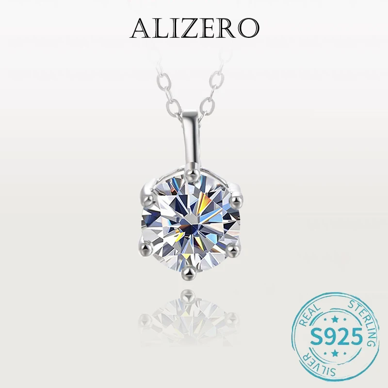 ALIZERO 2.0ct Round Cut D Color Moissanite Necklace For Women Fine Jewelry with GRA 925 Sterling Sliver Diamond Pendant Necklace