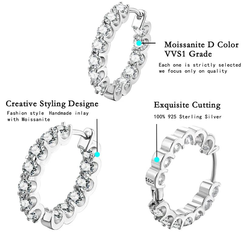 ALIZERO 2.6ct D Color Moissanite Hoop Earrings S925 Sterling Silver Passed Diamond Test Earrings For Women Wedding Fine Jewelry