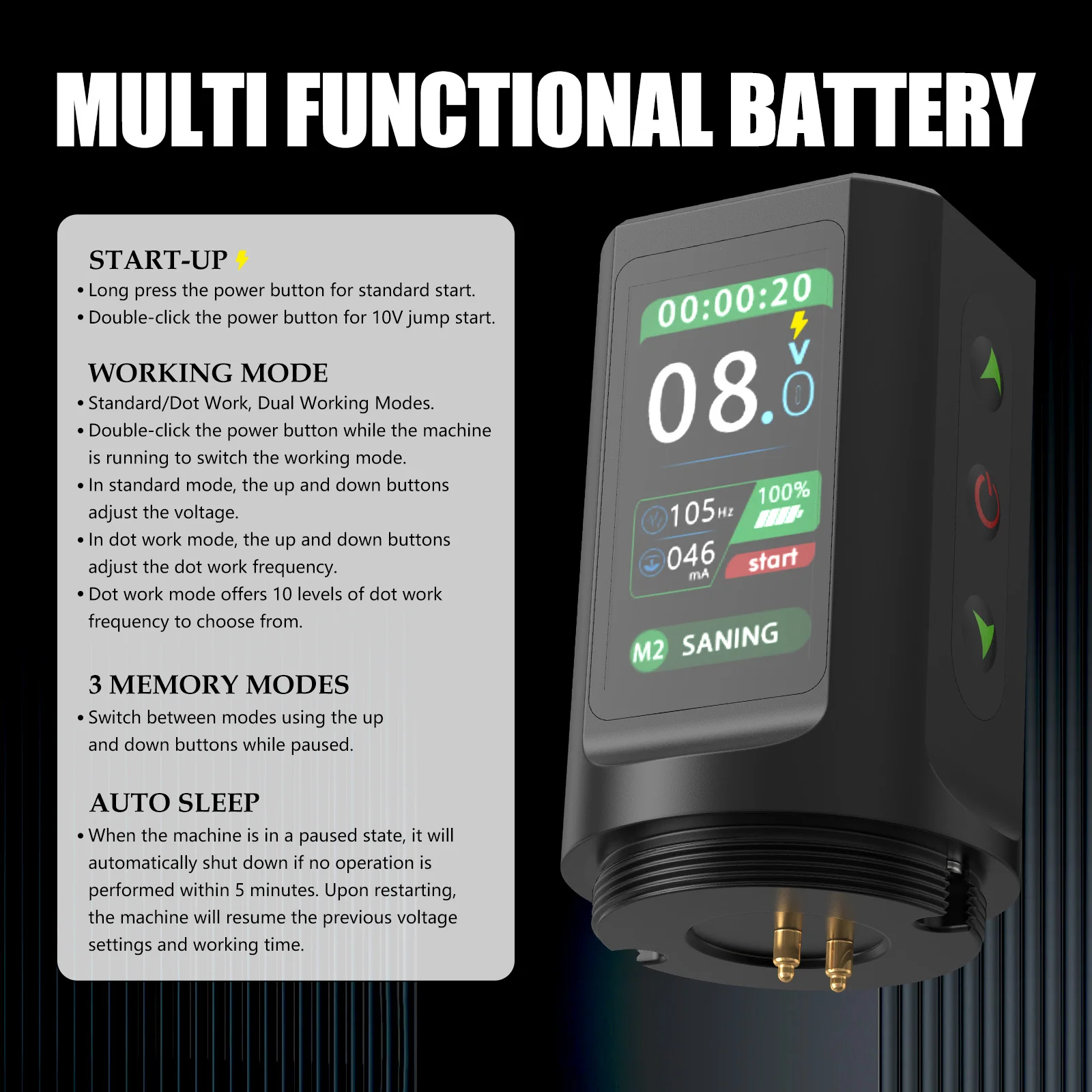 -Jump-Start Mode:Allows The Tattoo Machine to Push The Magnum Tattoo Cartridge Needles.
