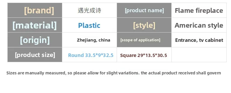 | color | Black square fireplace, black round fireplace |