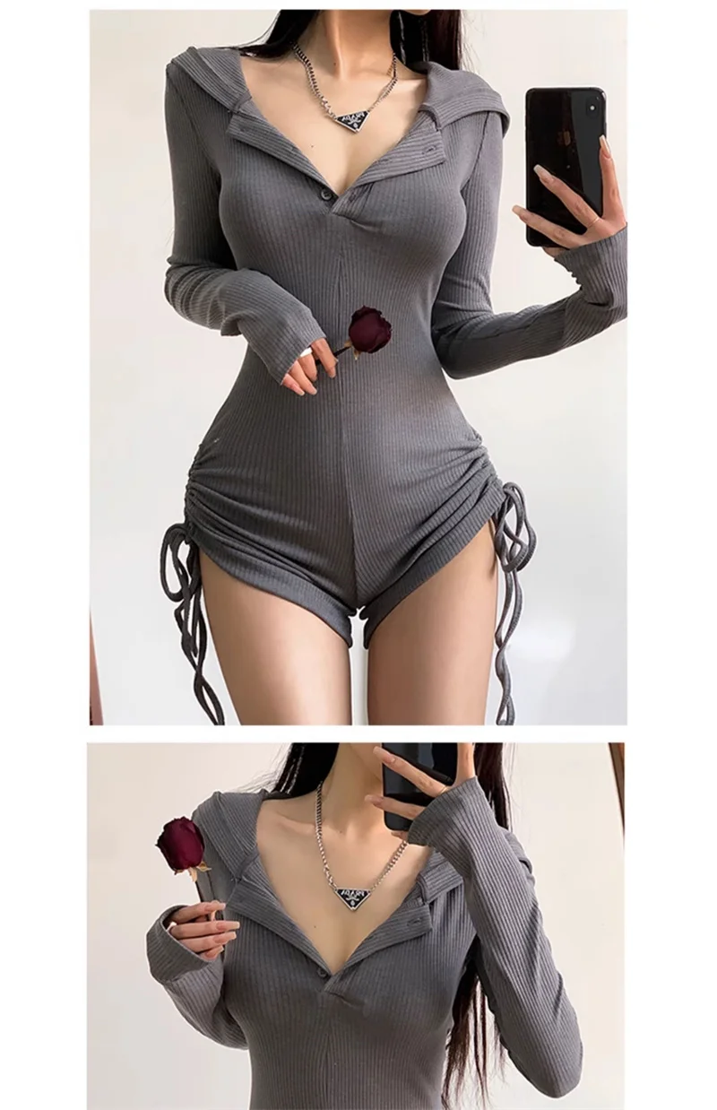 This short-sleeved jumpsuit is ideal for warmer weather, providing comfort without sacrificing style. Its long sleeves offer versatility, allowing you to layer it for cooler days.