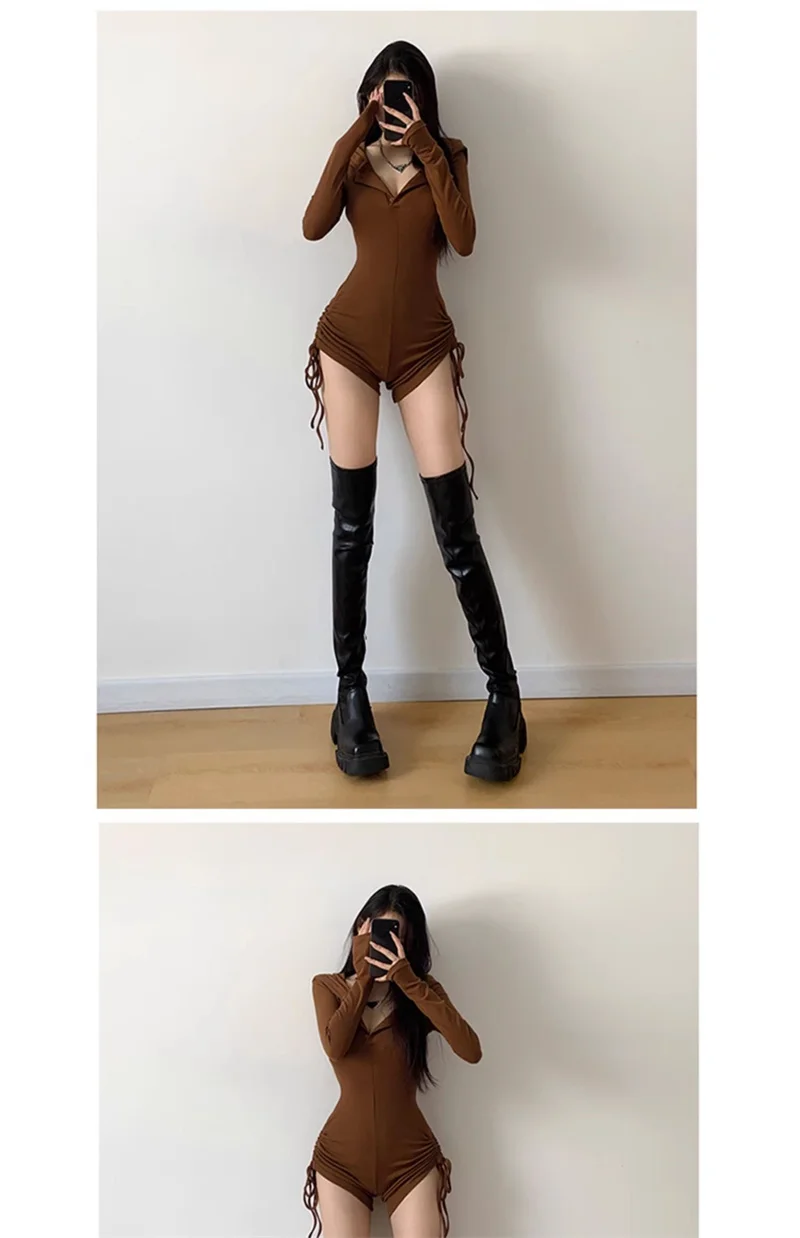 This American-style jumpsuit offers a versatile look, perfect for commuting or casual outings. Its sleek design enhances your figure while the unique pleating adds a touch of elegance.