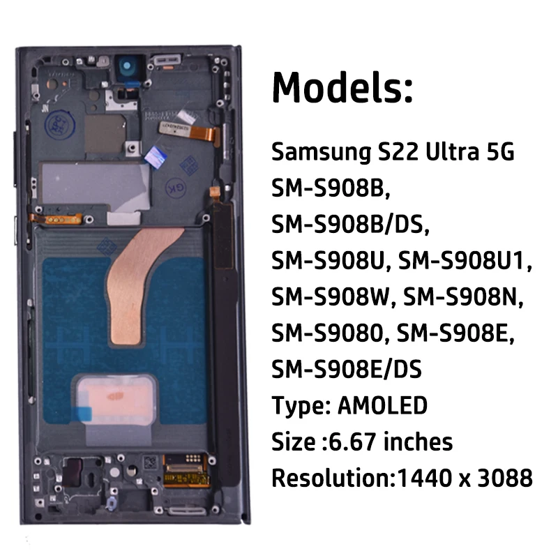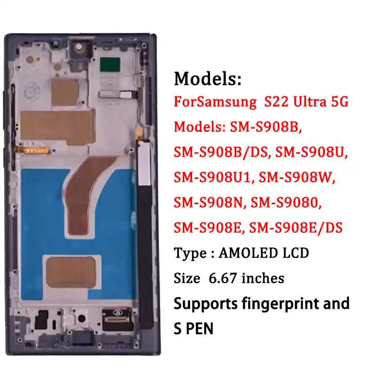 AMOLED Display For Samsung Galaxy S22 Ultra 5G LCD Display Touch Screen Digitizer Assembly For Samsung S22 Ultra Display