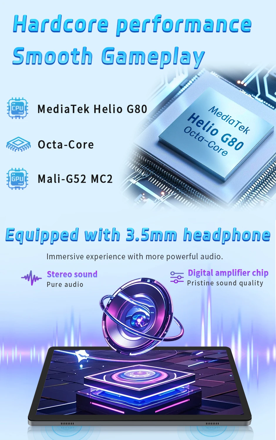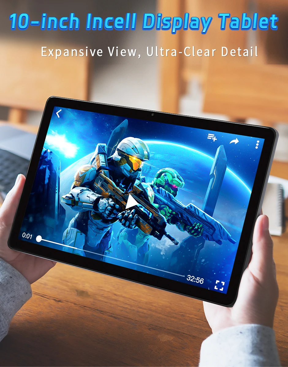 【10.1inch 1280*800 Incell Display + Widevine L1】Tablet with a 10.1 inch 1280*800 Incell display, providing a realistic visual experience with clear details. Using IPS Incell fully laminated display technology, the screen is clearer, richer in color, and also provides a wider viewing angle. Effectively filters harmful blue light, reduces eye fatigue and irritation, and protects your vision health. Additionally, Tablet supports Widevine L1. This allows you to smoothly watch copyrighted content such as high-quality HD content and streaming services on Prime video, DISNEP, Hulu, etc. It also supports wireless projection and can easily connect to a large TV