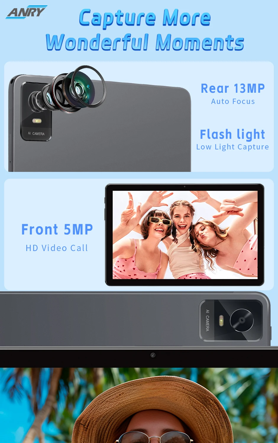 【2.4G/5G Dual Band WIFI+ GMS Certified +13MP Rear/5MP Front】supports high-speed AC 2.4G/5G Wi-Fi and BT5.0 more stably and faster. The front 5MP camera and rear 13MP camera can capture stunning photos and enjoy clear video chats. High-quality dual-speaker design provides you with immersive and high-quality audio. With the pre-installed Google kids space, parents can control the tablet's usage rights, time limit and so on via google family link. It is perfect gift for lover, kids, seniors,friends, etc.