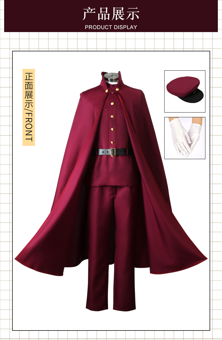Costume Include; Cloak ,top ,pants ,hat,belt,gloves (wig not included)