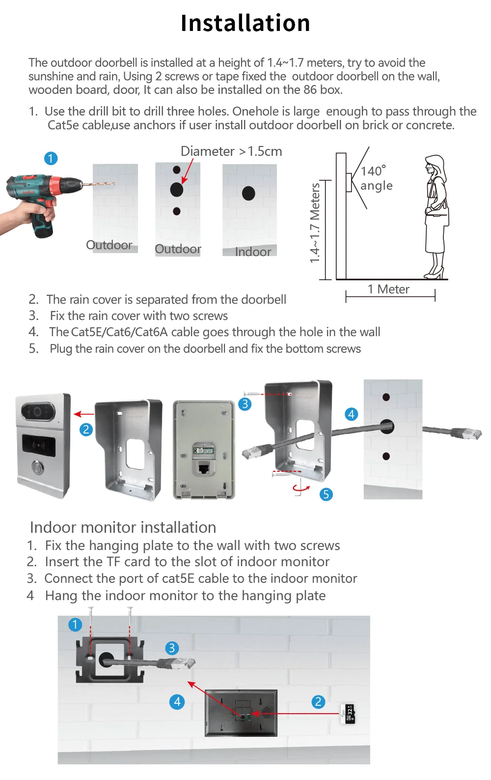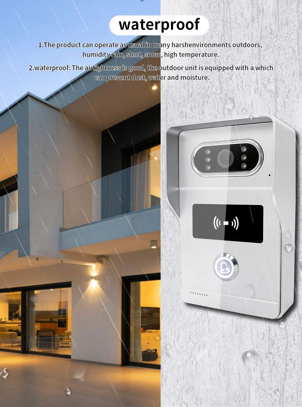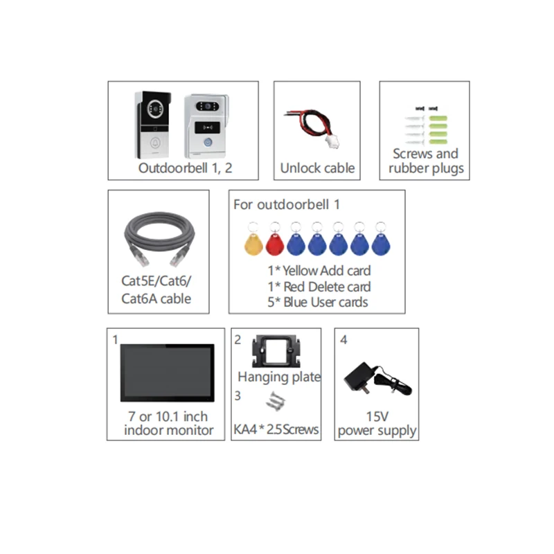 - Kit Configuration: One to One video doorphone