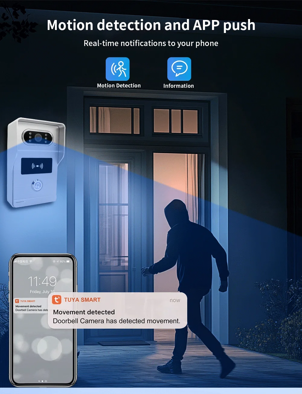 Message:Push photo to APP when motion detection or call