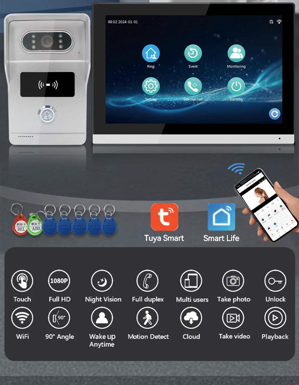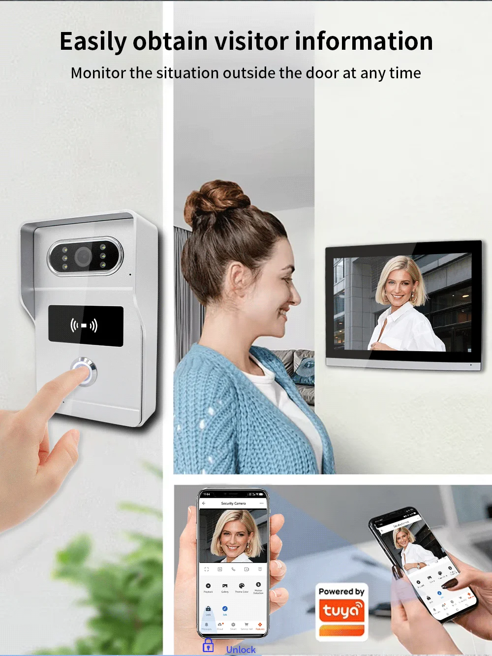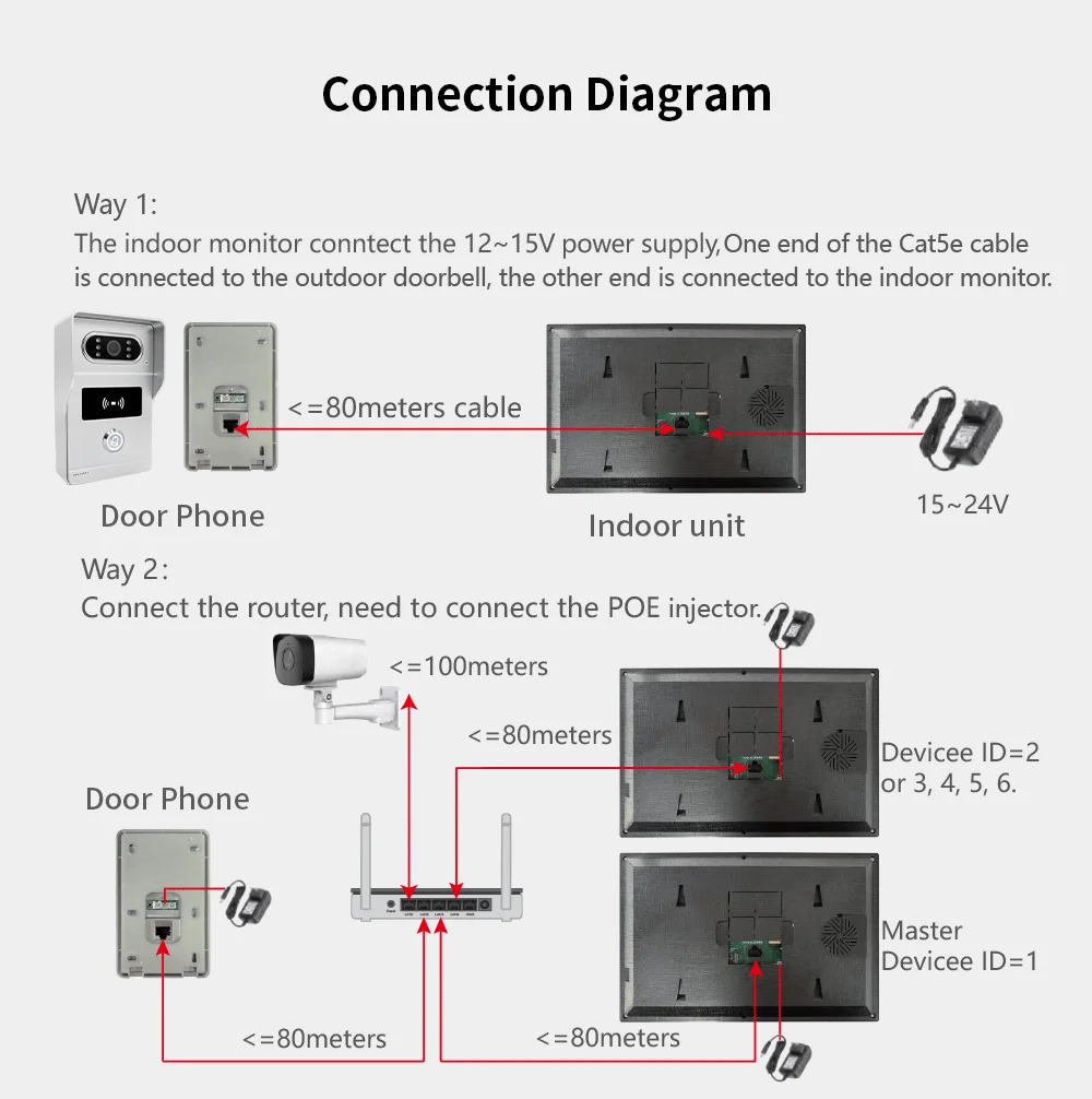 Dual-Way Communication between indoor monitor and outdoor camera; Call Transfer among monitors. You don't always go downstairs open the door after install the multiple intercom.