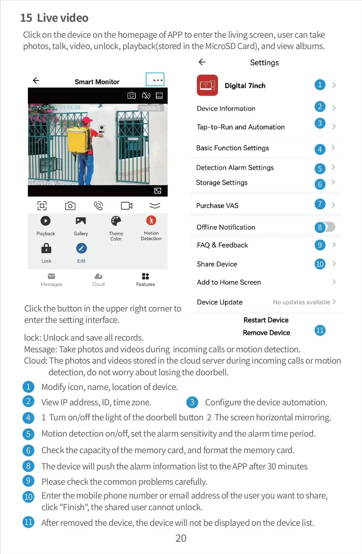 TF Card:External TF card to save photos or videos, leave messages
