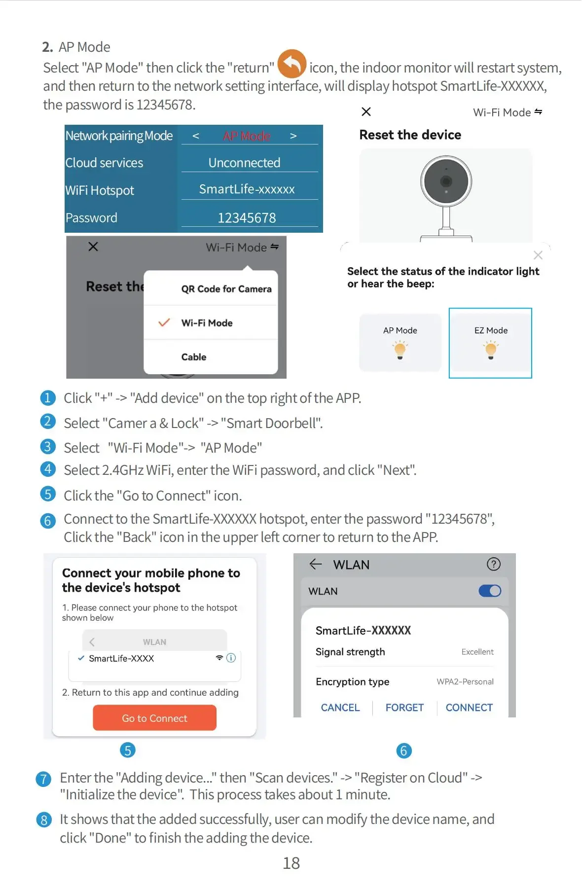 Network:Master indoor monitor connects 2.4G WiFi 802.11 b/g/n