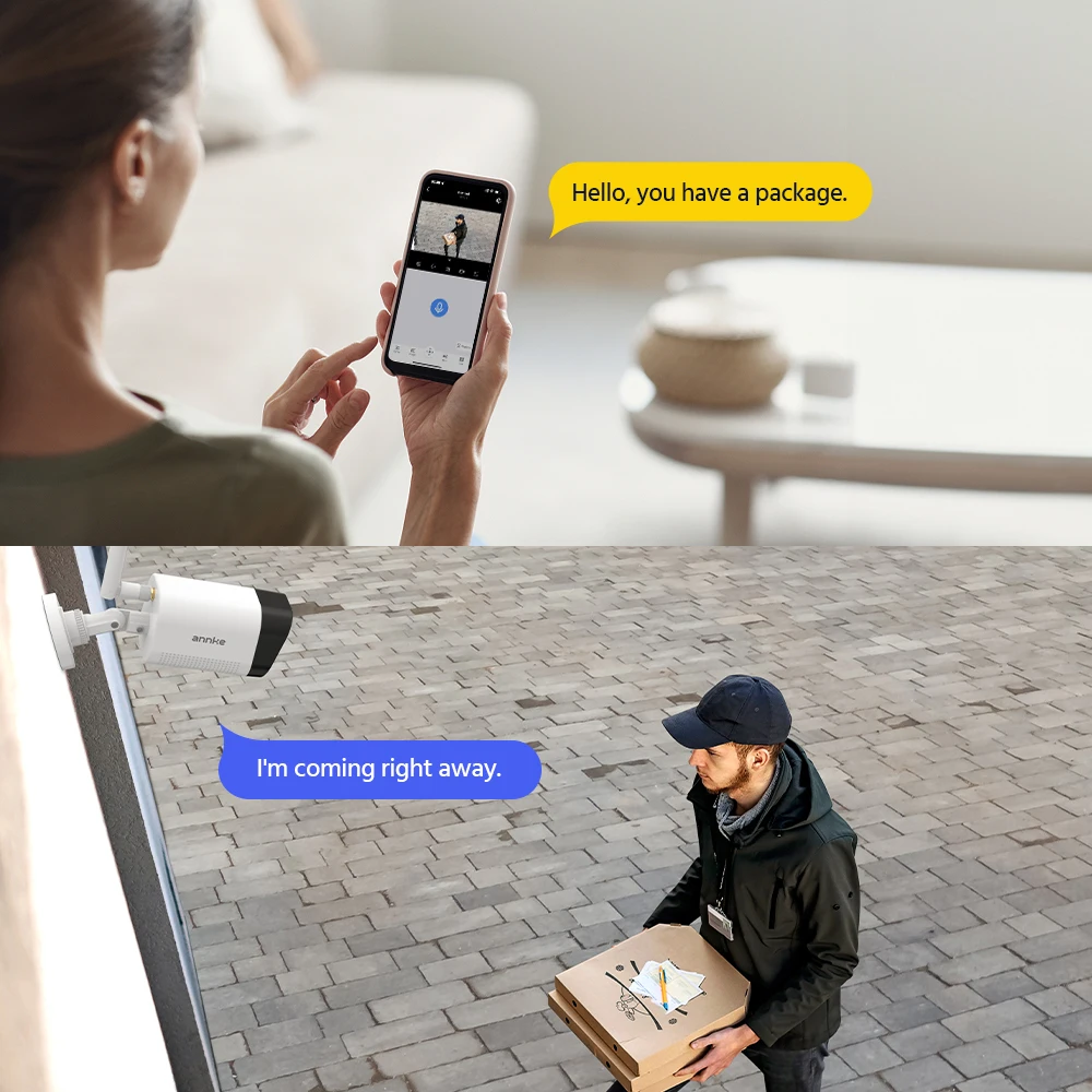 Experience hassle-free two-way talk with the integrated microphone and speaker. Answer visitors, give instructions, or ward off unwanted guests with just a tap on your phone.