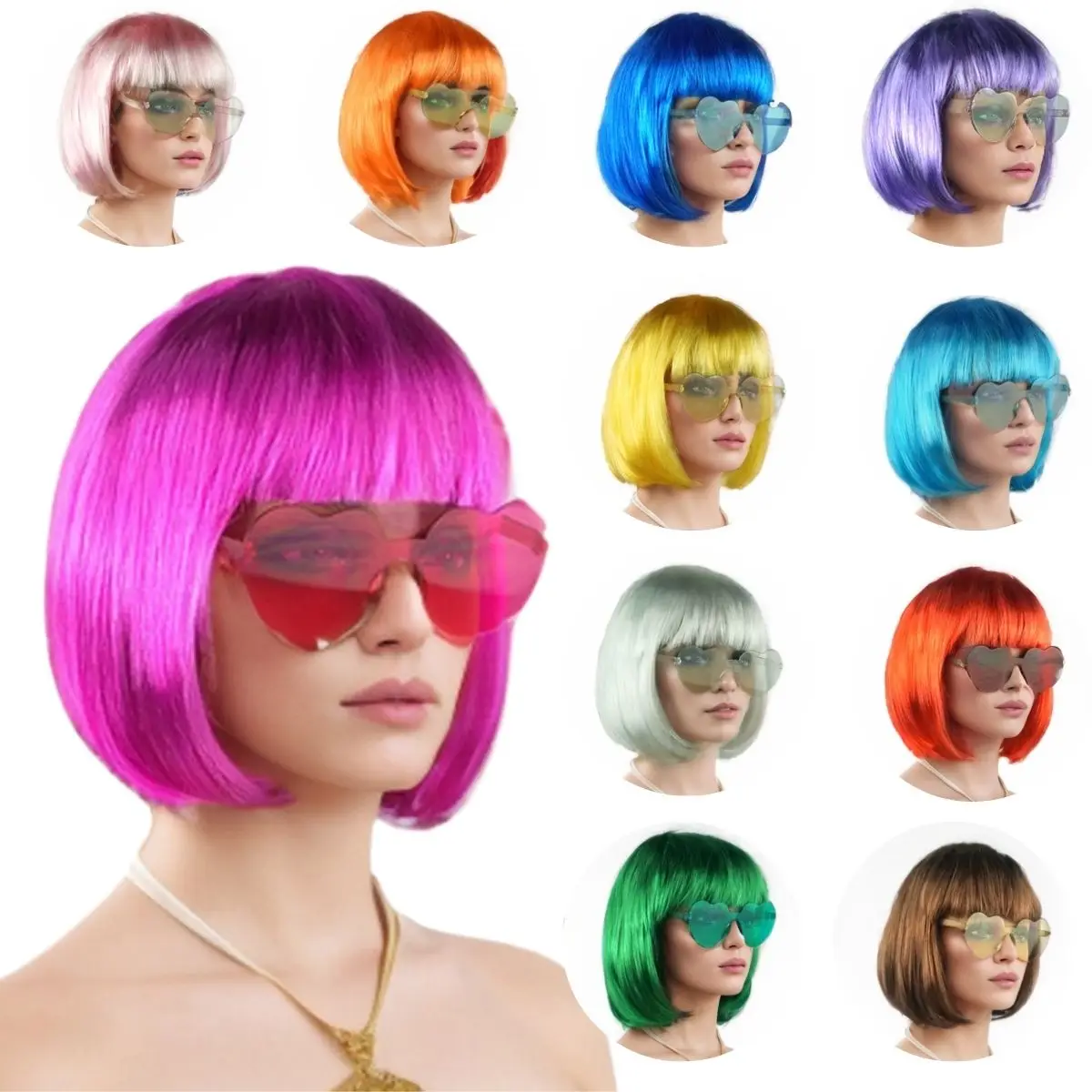 3 reviews for Anxin Brand Synthetic Fiber Wig: Bob Haircut with Bangs, Smooth and Shiny Hair Texture, Available in Multiple Colors Such as Pink/Purple/Sapphire Blue/Black; Made of High-Quality Synthetic Fiber Material, Comfortable to Wear and Easy to Care For; a Fashionable Item Suitable for Adult Men and Women’s Party Costumes, Cosplay Character Recreation, and Fun-Themed Events