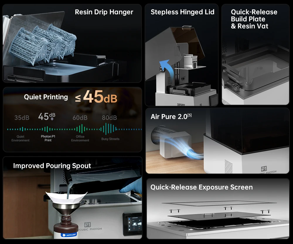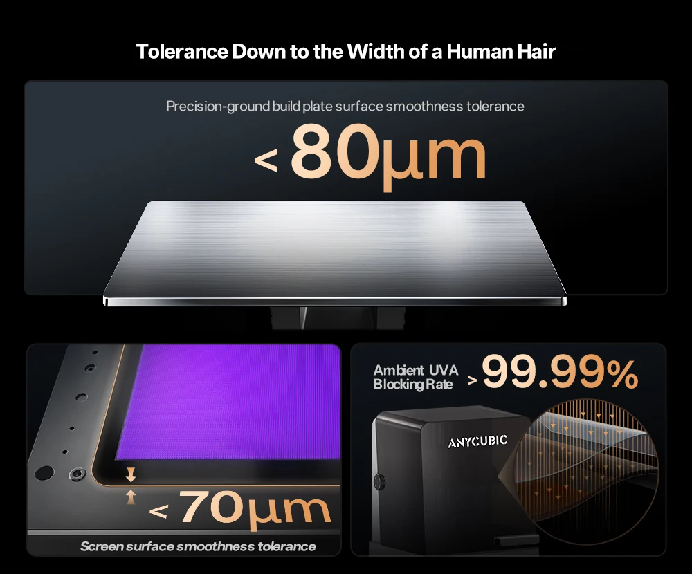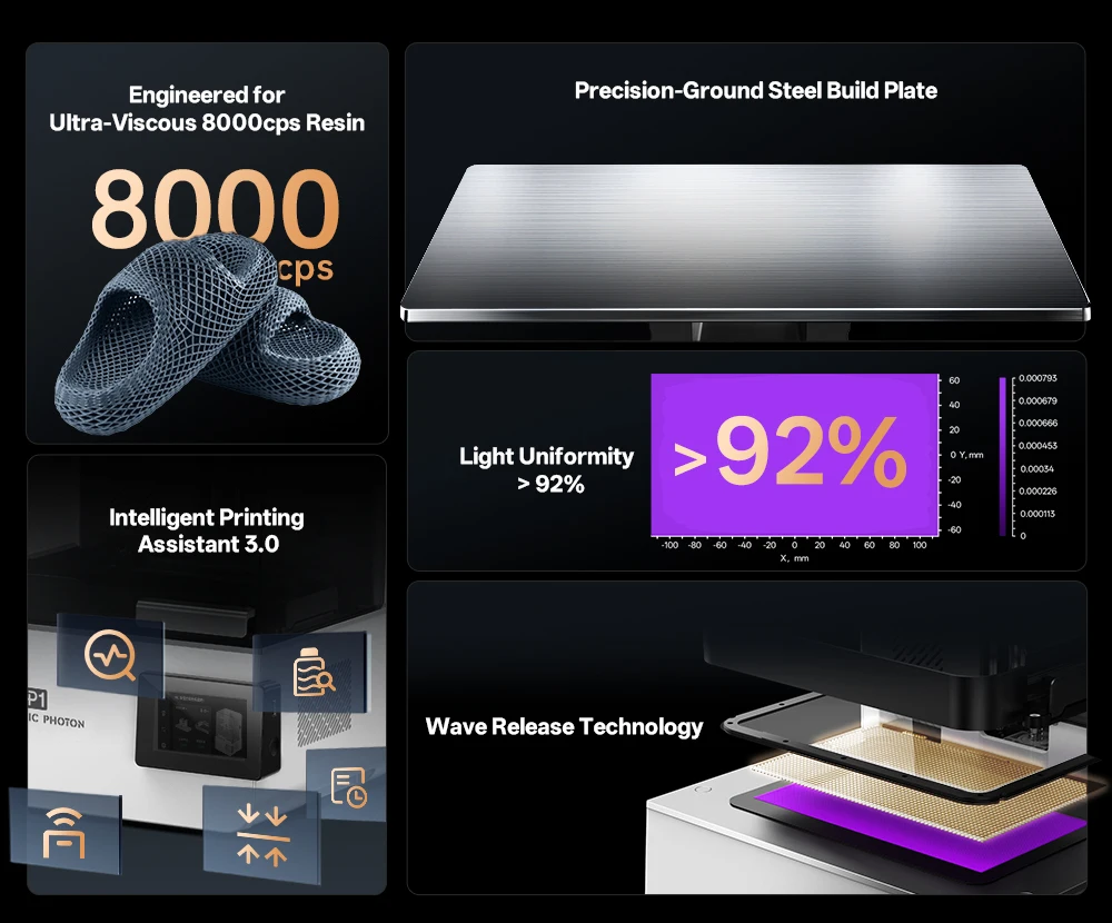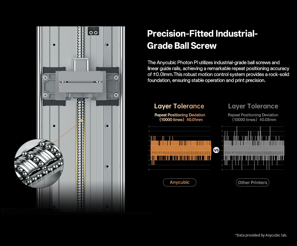 The Anycubic Photon P1 utilizes industrial-grade ball screws and linear guide rails, achieving a remarkable repeat positioning accuracy of ±0.01mm. This robust motion control system provides a rock-solid foundation, ensuring stable operation and print precision.