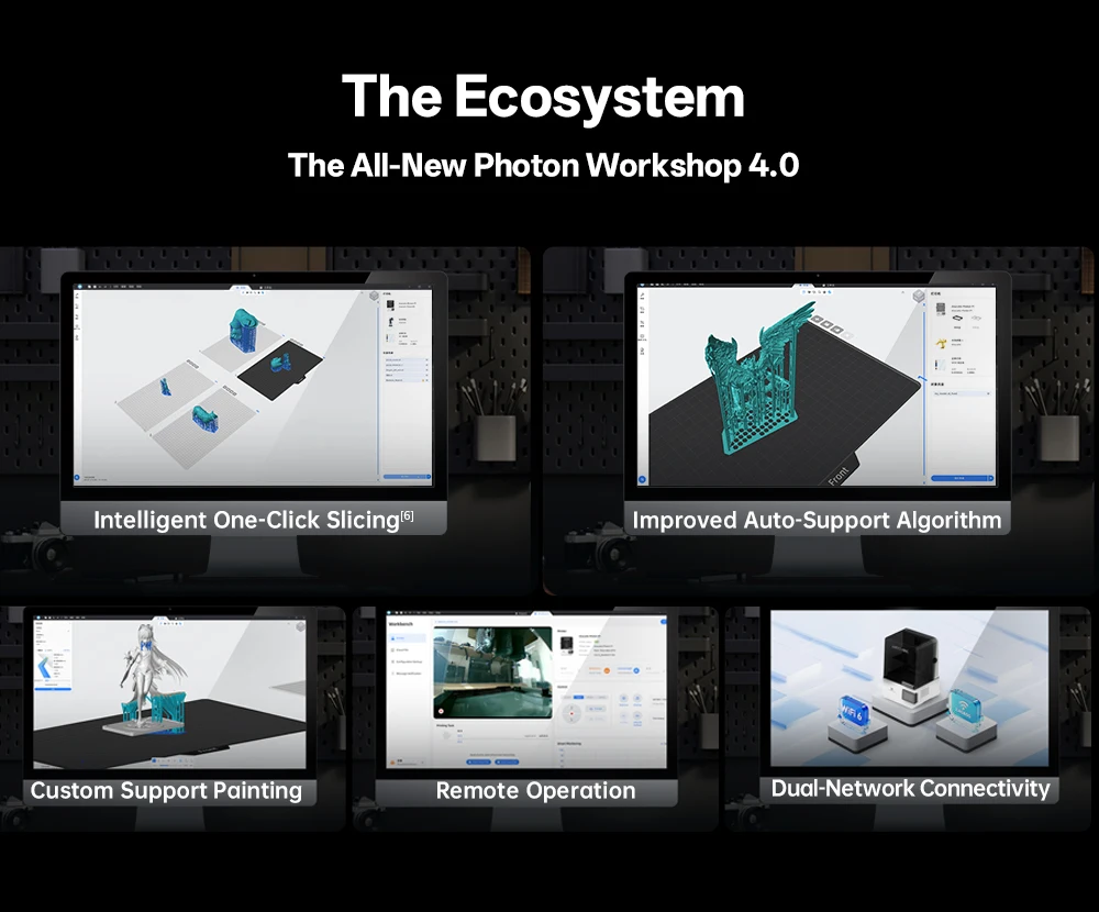 Intelligent One-Click Slicing:Pre-loaded printing parameters for all Anycubic resins. Supports multi-plate simultaneous slicing for efficient batch printing of multi-part models.