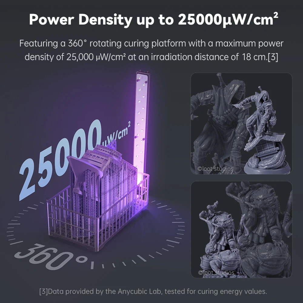 Featuring a 360° rotating curing platform with a maximum power density of 25,000 μW/cm? at an irradiation distance of 18 cm