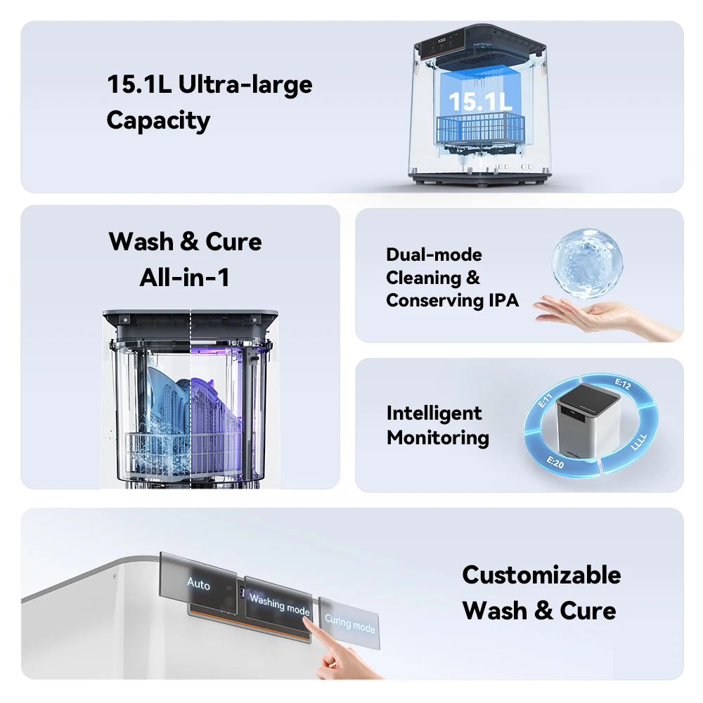 15.1L Ultra-large Capacity / Thorough Cleaning/ Wash & Cure All-in-1/ Conserving IPA