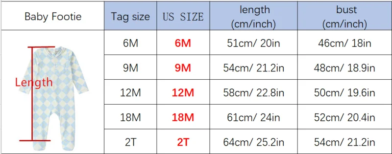 For footie, we made one size smaller than last season.