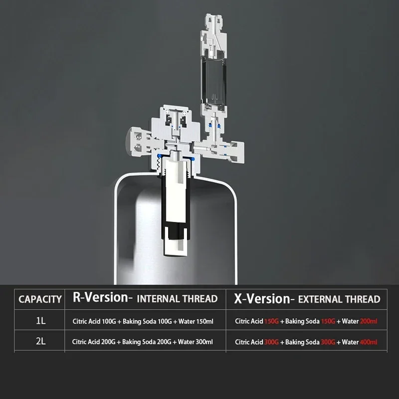 2L: 200g citric acid + 200g baking soda + 300ml water