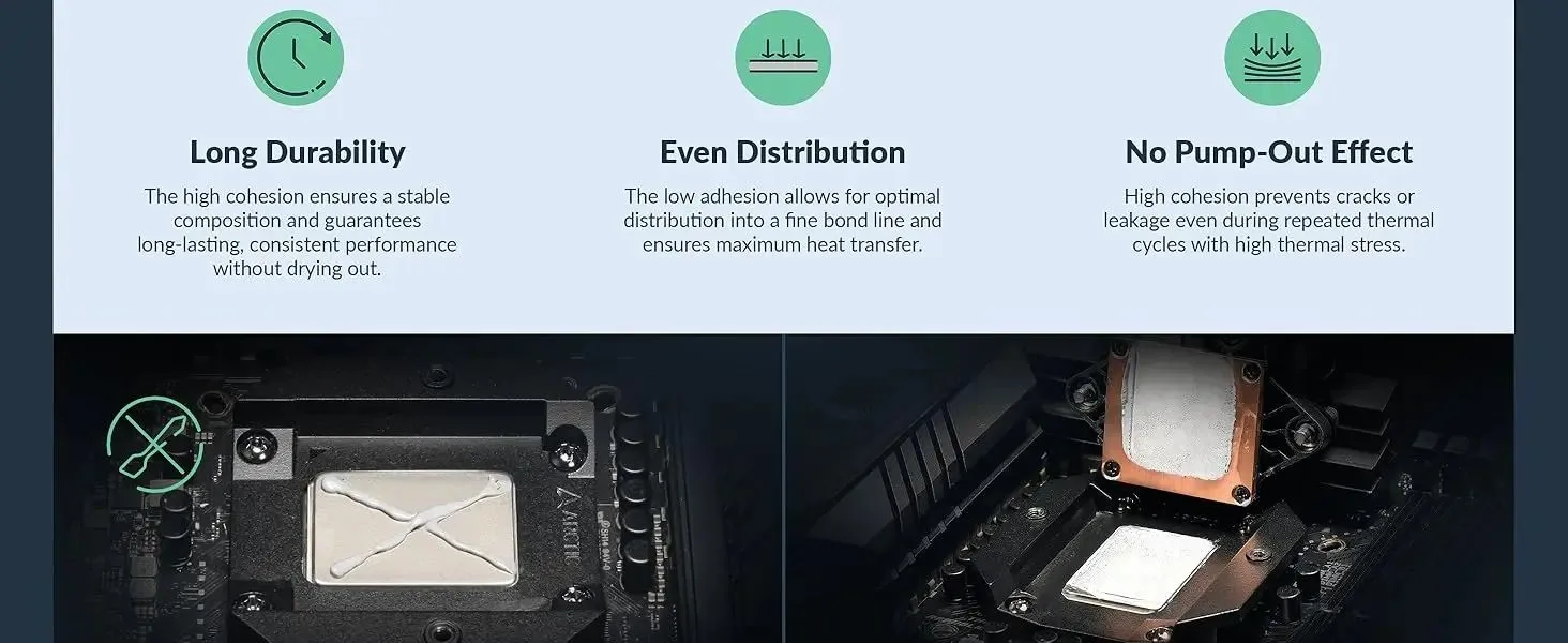 Depending on personal preference and area of application, a thinner or thicker thermal compound may be preferred. Excellent non-drying and non-bleeding properties ensure constant long-term performance. With ARCTIC thermal pastes you will find the optimal viscosity for your application.